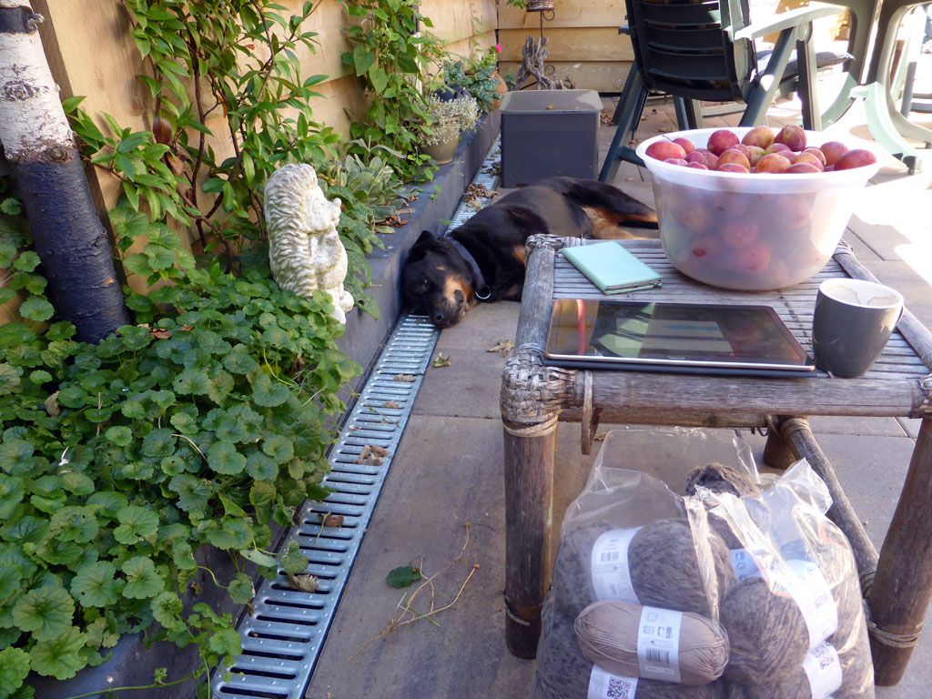 Na een rondje met Didi eerst naar Ans vanmorgen want ik kon niet verder met mijn haakwerkje. Ook gelijk wol voor een trui meegebracht, een mens moet toch wat met die warmte. De rest van de dag lekker in de schaduw die hier gelukkig ook volop is.