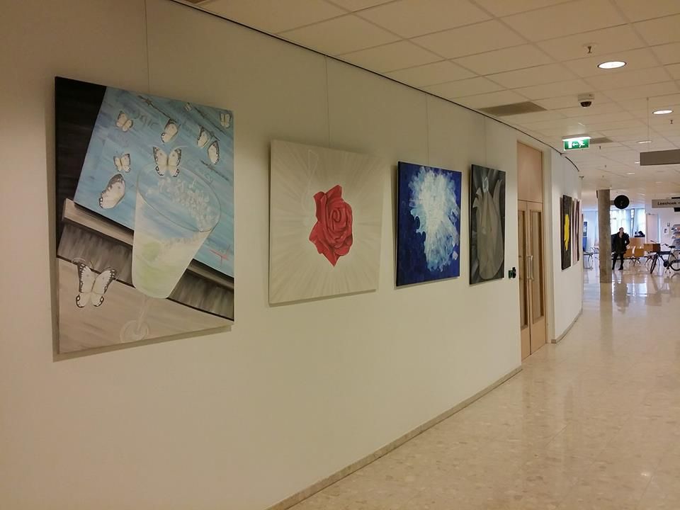 Verder hielpen we vanmorgen de schilderijen van Miriam naar het Gemeentehuis te verhuizen. Daar hangen ze nu te pronken. Ik heb nog een beetje geholpen om ze op te hangen want dat was nog een heel karwei.