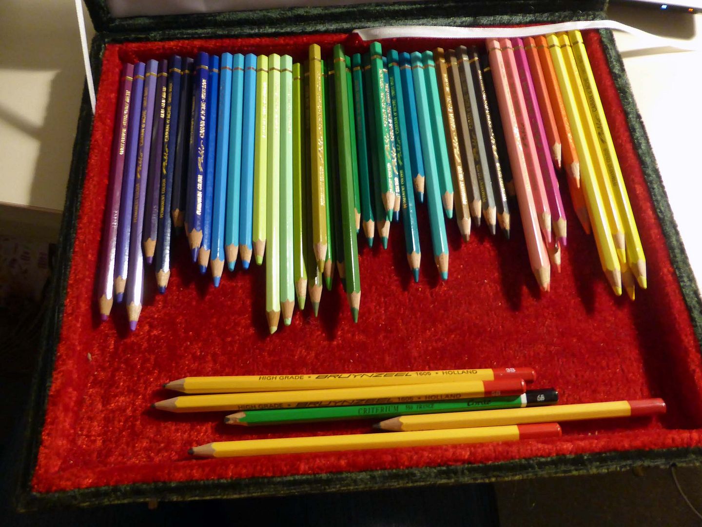 Ik heb ze eens uitgezocht en heb nu ook een restje Rexel Cumberland. Ik gebruikte die twee altijd door elkaar, maar ga nu een tekening maken met alleen deze, gewoon om te kijken hoe ze bevallen.