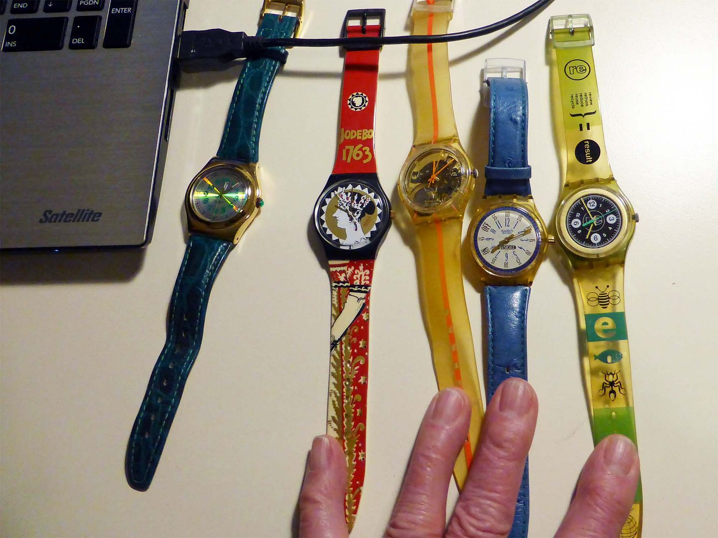 Bijna dertien jaar geleden kocht ik mijn Camel en heb hem al die dertien jaar met veel plezier gedragen, het was een fijn horloge waar ik om de paar jaar een nieuw origineel leren bandje voor kocht. Die zijn nu niet meer verkrijgbaar en nu heb ik wel iets dat er op lijkt, maar dan is het toch voor mij niet meer de echte. Bovendien is het glas nogal beschadigd en verwacht ik dat vandaag of morgen de batterij leeg is dus ik besloot eens te kijken of Swatch nog bestond, daar heb ik er ook meerdere van versleten en die heb ik gewoon nog, zoiets kan ik dus niet zo makkelijk weggooien, dat neemt ook geen plaats in natuurlijk.