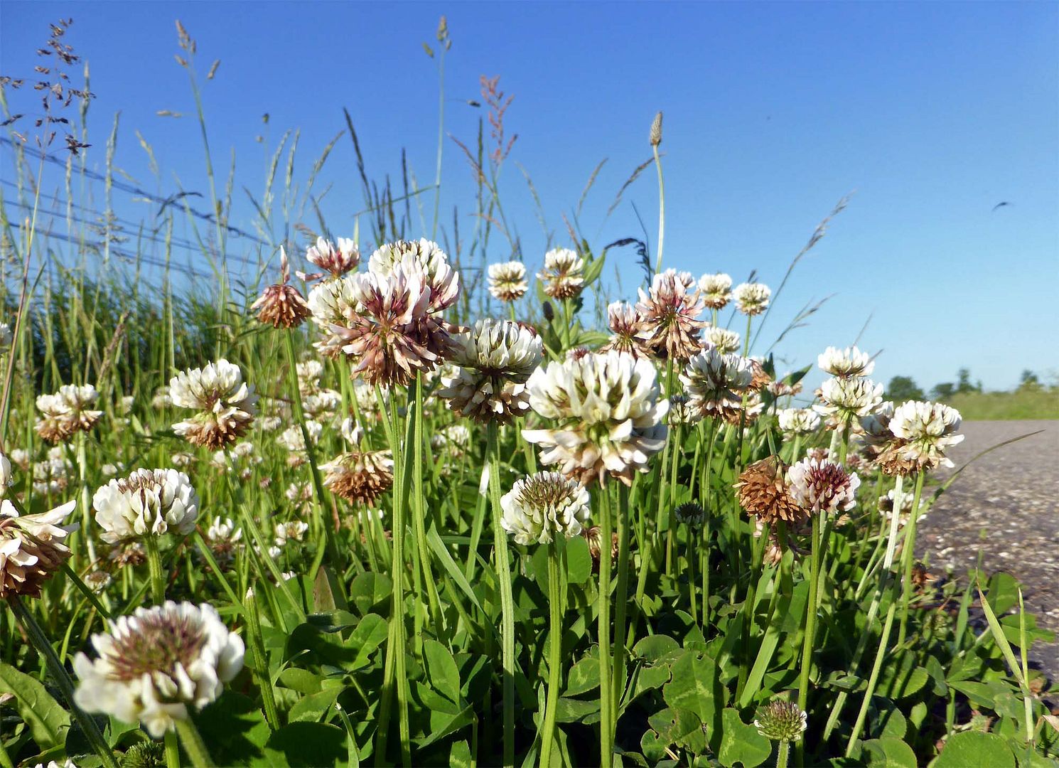 Ik had zin in een fijn rondje en besloot eens een andere kant op te lopen, maar Didi had totaal geen zin, als ik nog maar naar haar keek stond ze al in z'n achteruit, dat werd niets, lekker naar huis om de koffie in de zon. Mijn yoga matje tevoorschijn gehaald en wat oefeningetjes gedaan een mens moet toch wat op Hemelvaartmorgen .