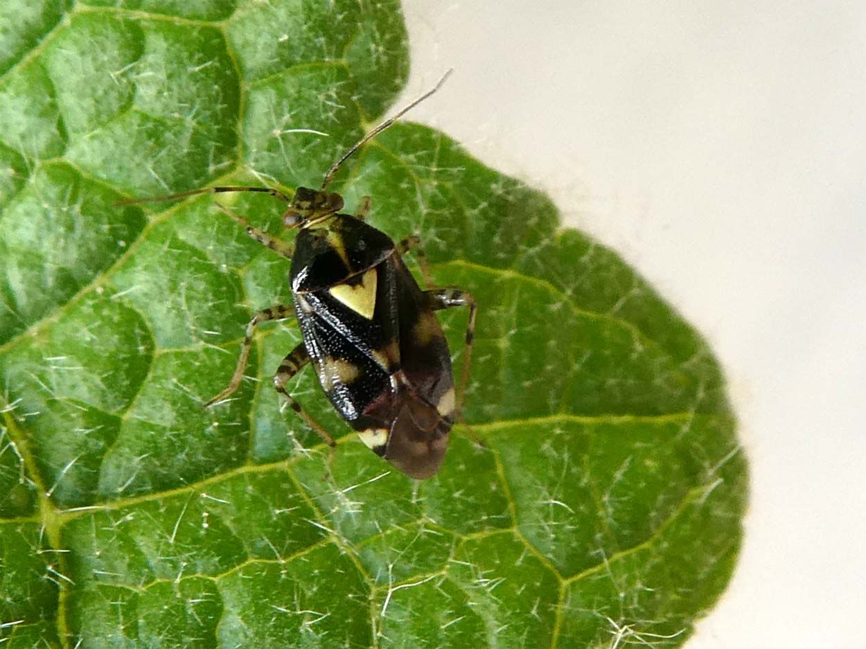 Een mooi piepklein hartenbeestje en een langpootspin op hetzelfde blad en een rups die mijn roos aan het verminken was, die heb ik over de schutting gegooid...