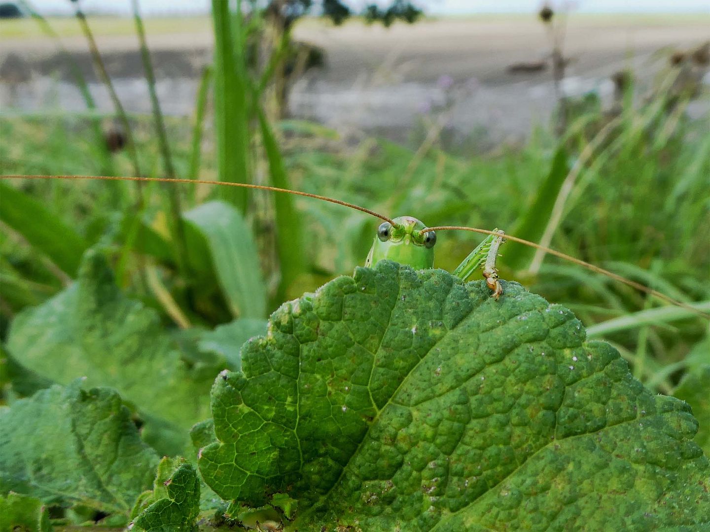 Vanmiddag kwam ik weer zo'n groen mormel tegen, ze verraden zich door nog net even een sprongetje te maken als je langsloopt, zodat je net even wat beter gaat kijken.