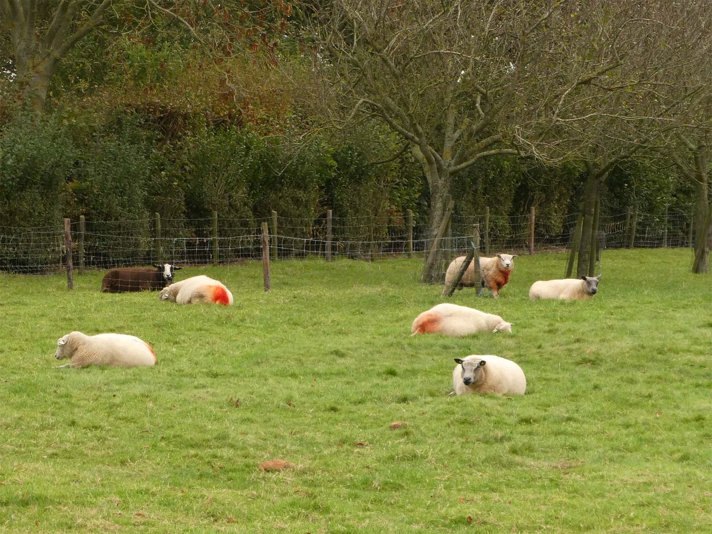 Het lijkt ook wel een bos achter die schapen. Is dat ook zo? Wat heerlijk hè als je niet zelf hoeft te schilderen en sausen!