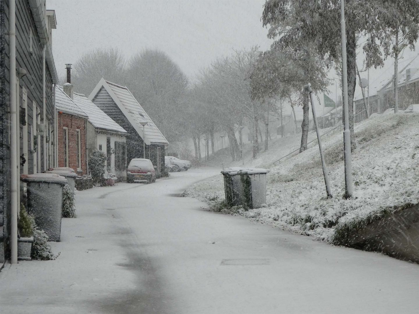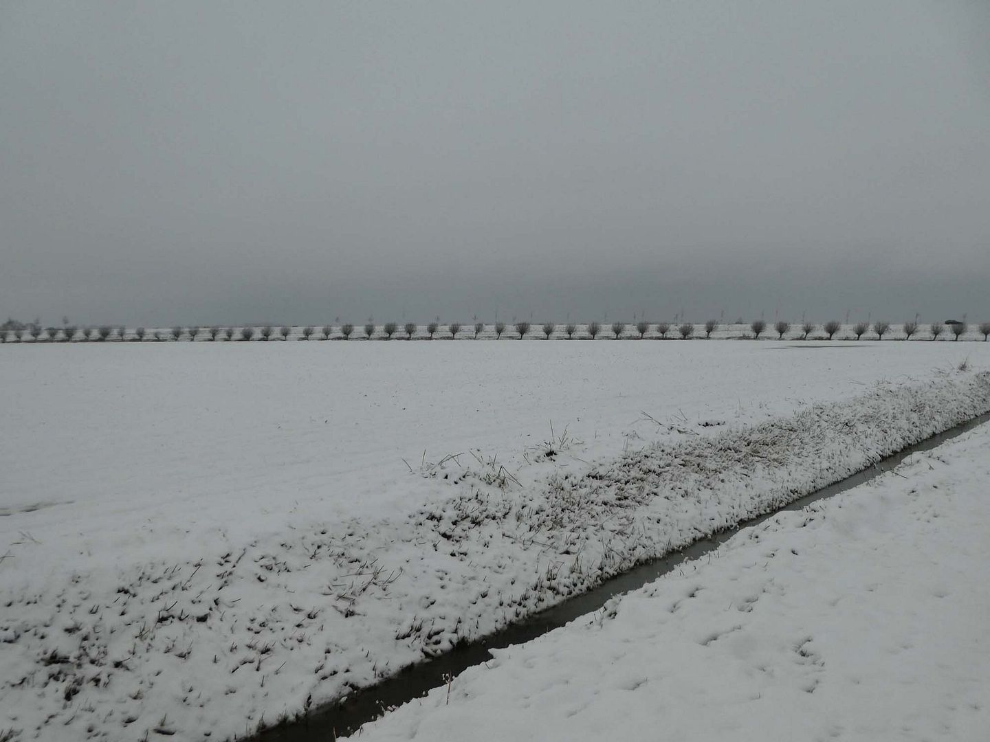 Toen ik vanmorgen voor het eerst naar buiten keek regende het nog gewoon, niks beloofde sneeuw. Maar na de thee op de dijk werden de druppels wit.
