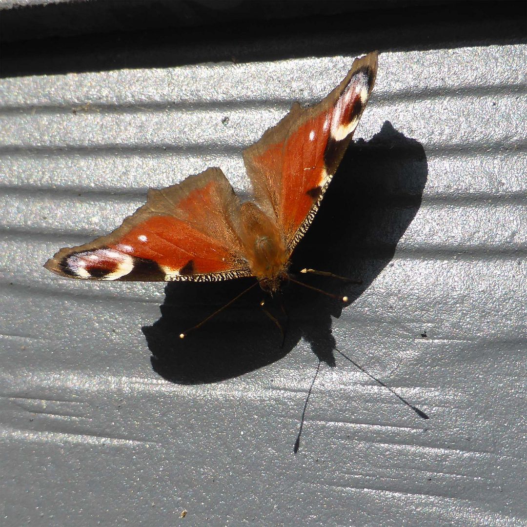 De tweede vlinder dit jaar met zijn al een beetje versleten vleugels.