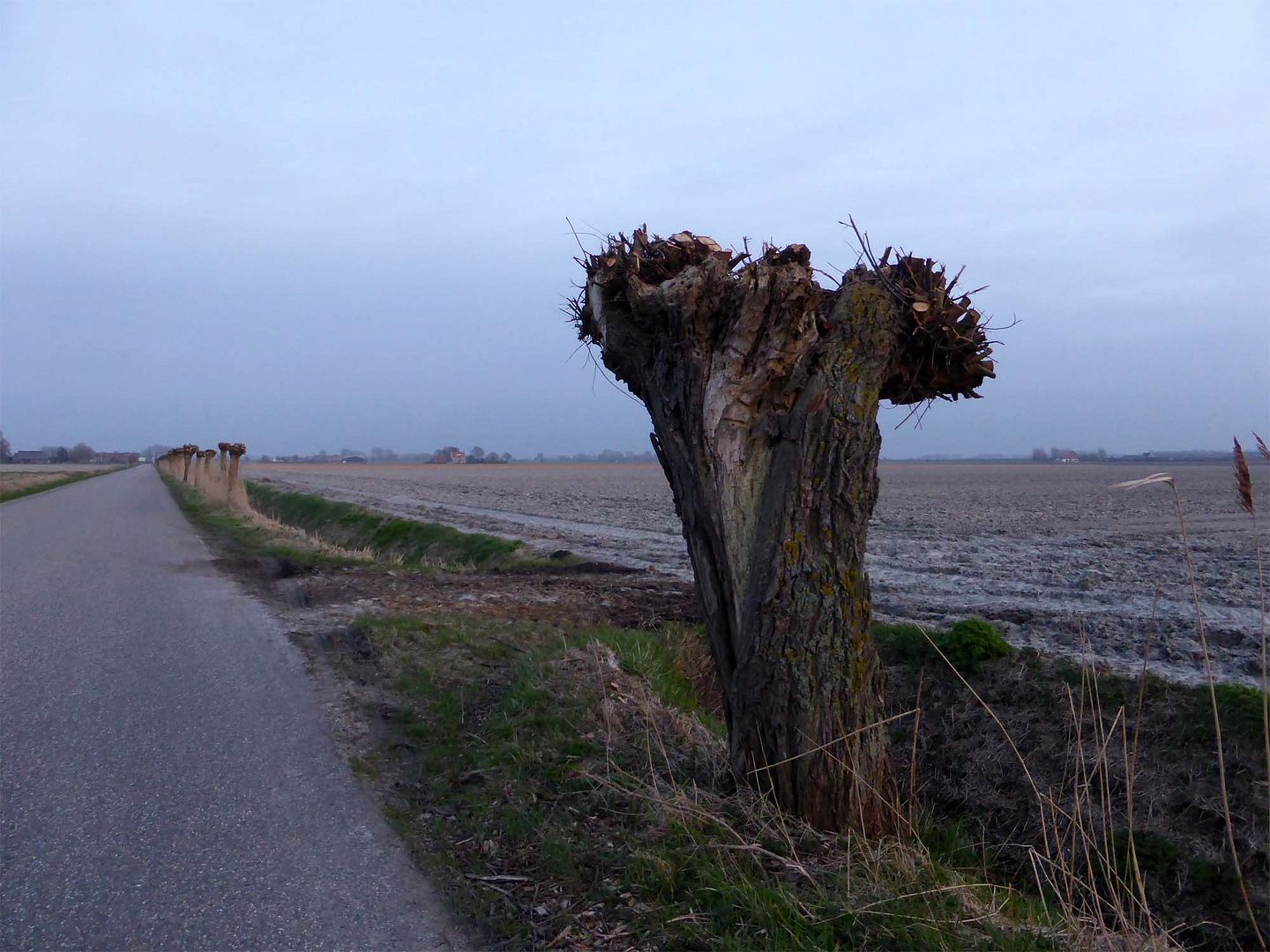 Er zitten soms imposante jongens tussen de knotwilgen die grillig afsteken tegen de avondlucht.