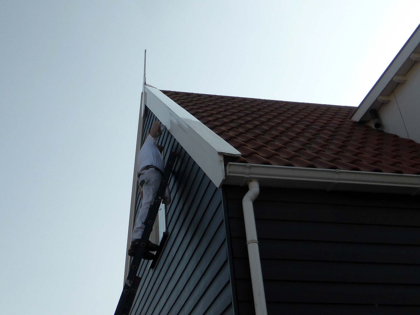 Hier was de schilder weer aan het werk, wat een luxe. Ik vind dat ik het wel verdien op mijn negenenzestigste hoor, ik zou het hier ook niet meer durven zo hoog. Vorig jaar deed ik de kozijnen nog in Scharendijke. Schilderen aan mijn huis terwijl het bewoond is ga ik niet meer doen. Voorlopig zit het nog goed in de verf.