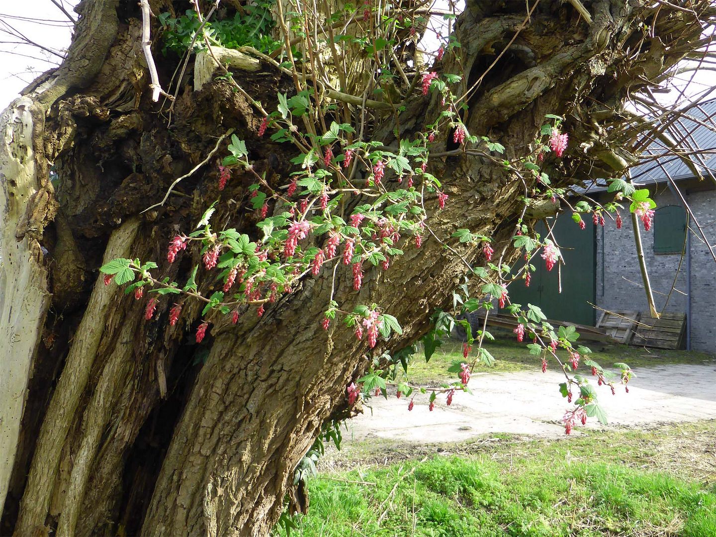 De ribes bloeide en een boom vol met prachtige grote katjes, helemaal vol.
