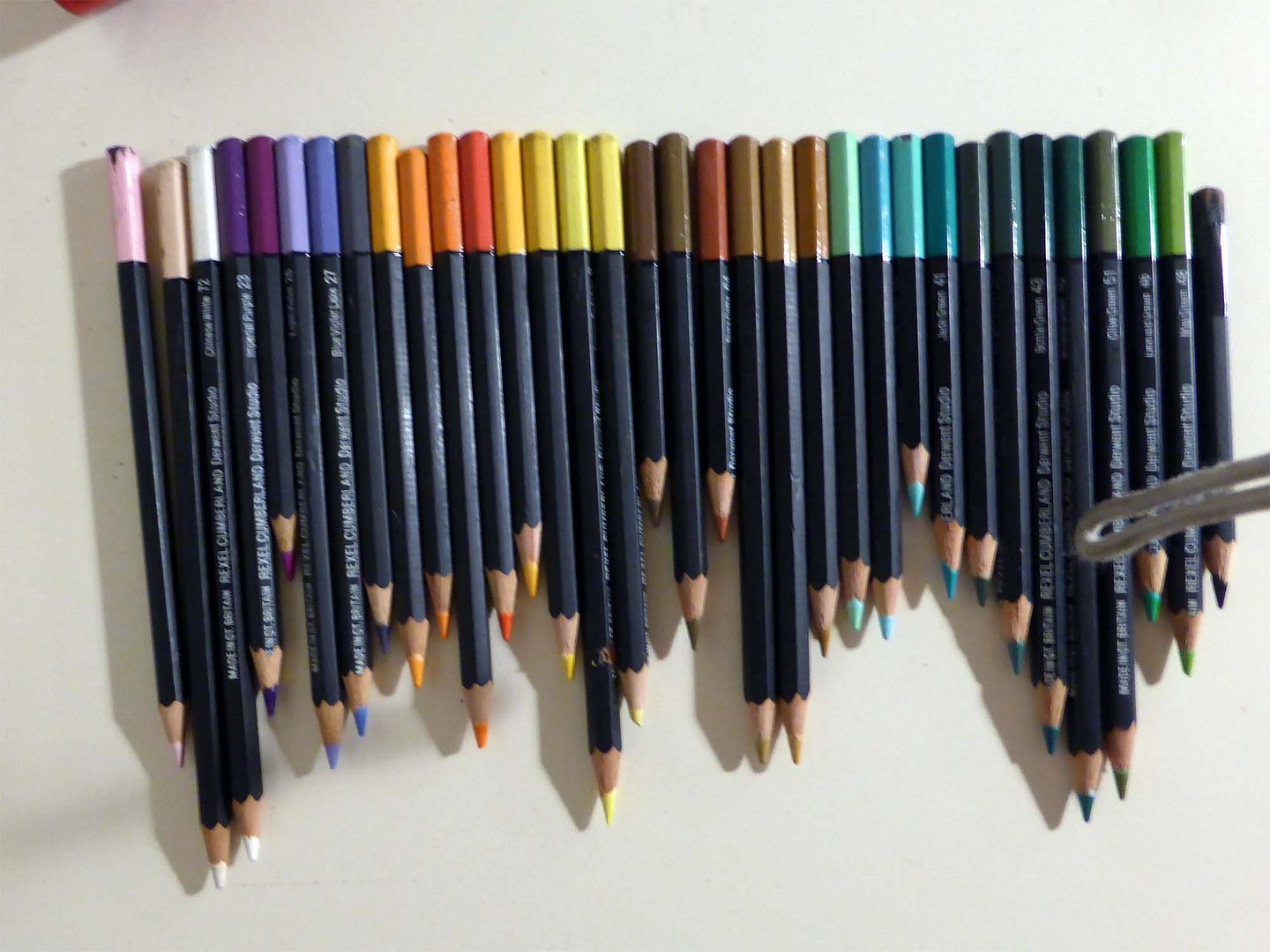 Rexel Cumberland Derwent Studio, ze zijn wat vettiger en harder dan de Polychromos, maar die Rexel Cumberland zal er niet meer zijn die kan ik niet meer vinden.