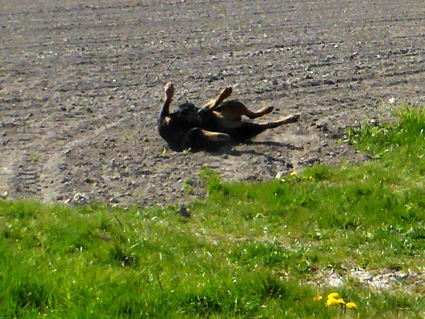 Eenmaal thuis vanavond wilde ze bijna weer gelijk naar buiten voor een maal gras, dus of het nu teveel geweest is met die rondjes, ik weet het niet meer, maar ik ben er nu wel een beetje klaar mee. Ze ligt nu buiten met haar grasbuik dus dat zal er nog wel uit moeten. Straks nog maar even rondje...
