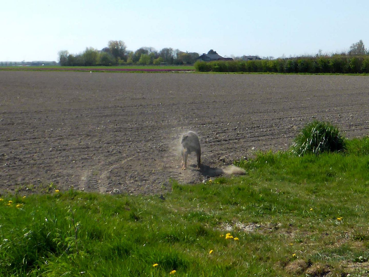 Nu hebben honden dat toch weleens hoor, hier hebben we geen gras maar als ze op Scharendijke 's morgens gelijk naar buiten wilde ging ze eerst een maaltje gras eten en daarna een kotspartij. Gisteren had ze dat hier eigenlijk voor het eerst, misschien heeft het ook met het voorjaar te maken, of niet loops worden wat dan eigenlijk zou moeten, kortom ze voelde zich niet lekker en had ook nog een snee in haar poot zag ik vanmorgen, niets met spiergedoe te maken maar gewoon een snee.