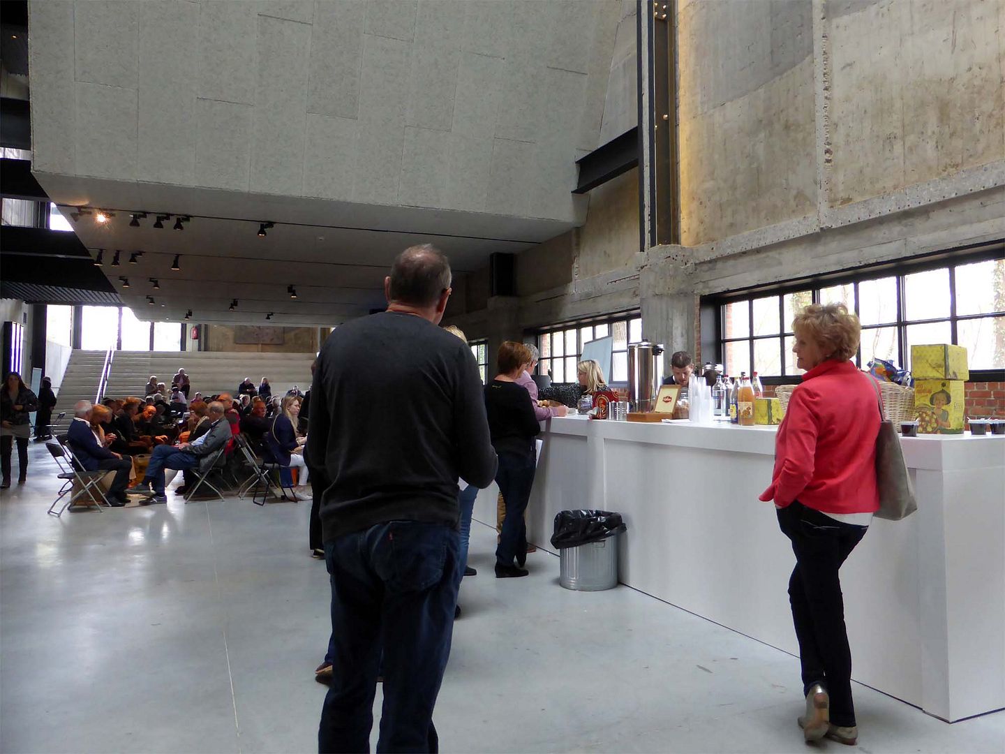 Bij binnenkomst krijg je een nummertje waar je tegelijkertijd een drankje voor krijgt en dan is het wachten.