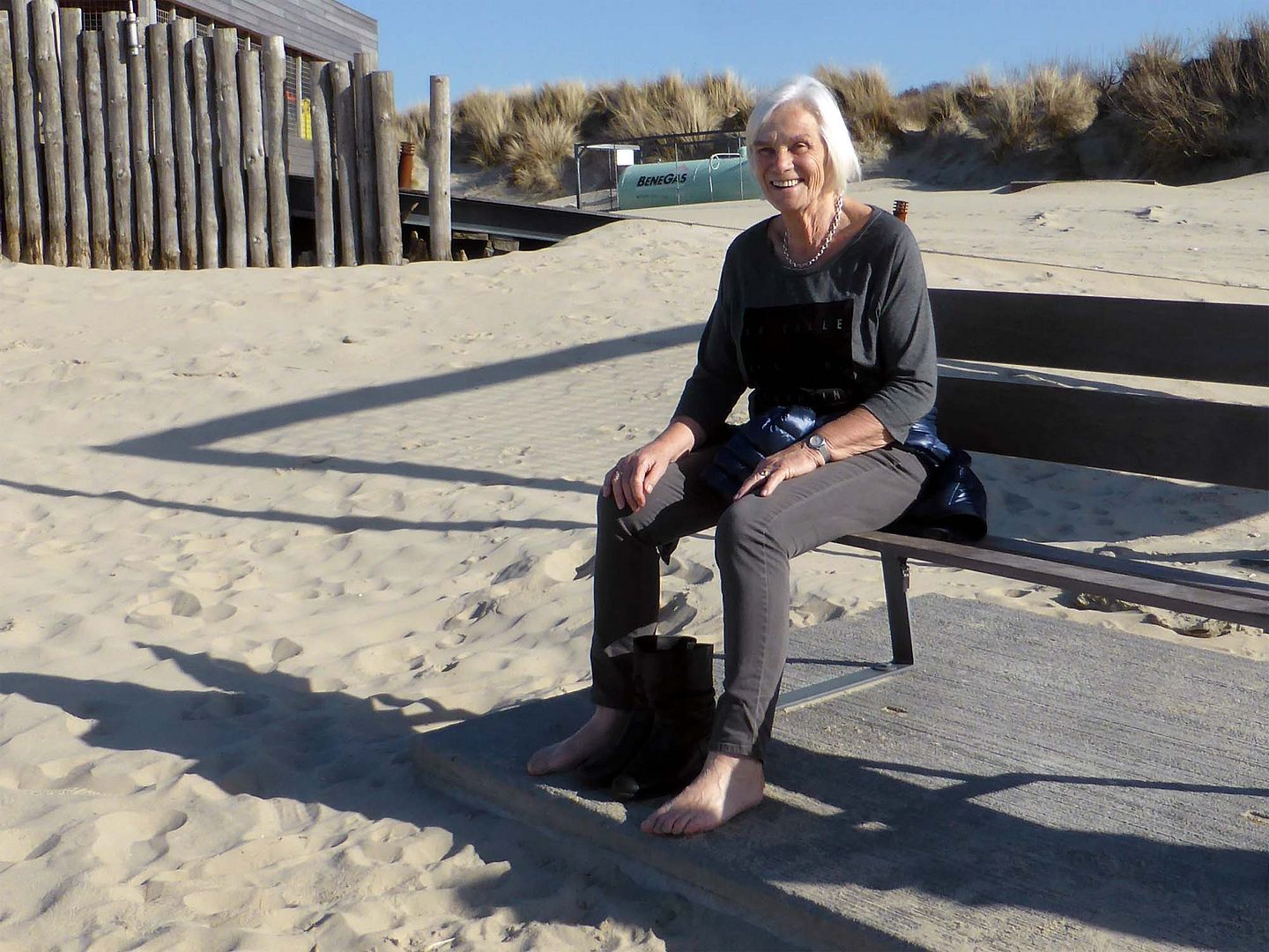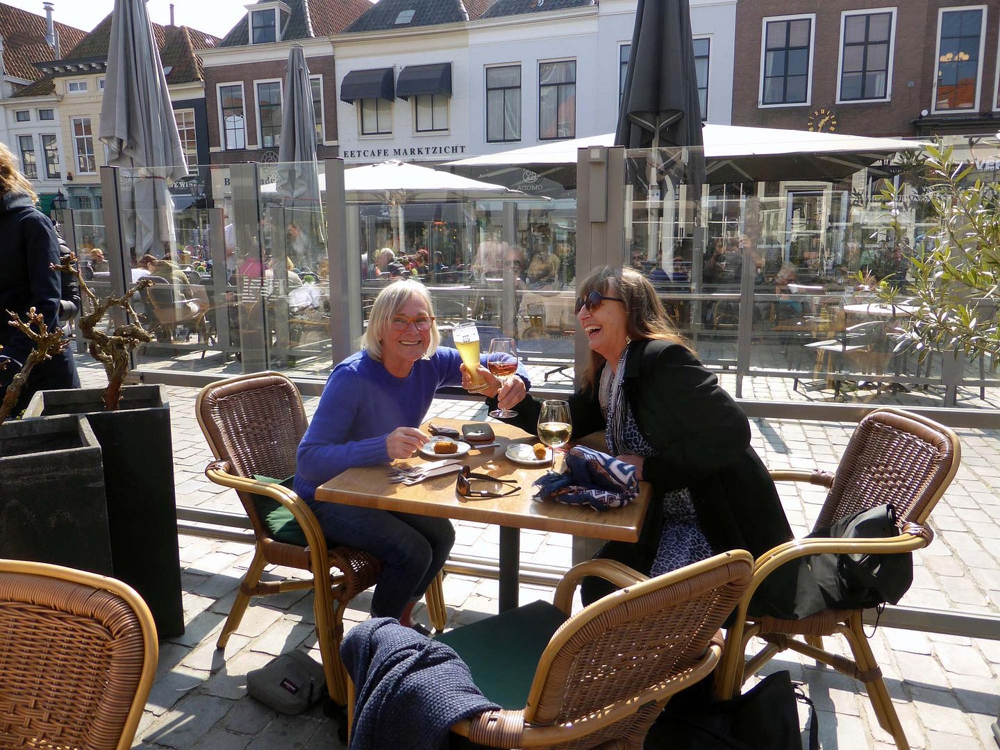 We dronken een oranjebittertje in de zon, zolang die scheen was het goed te doen.