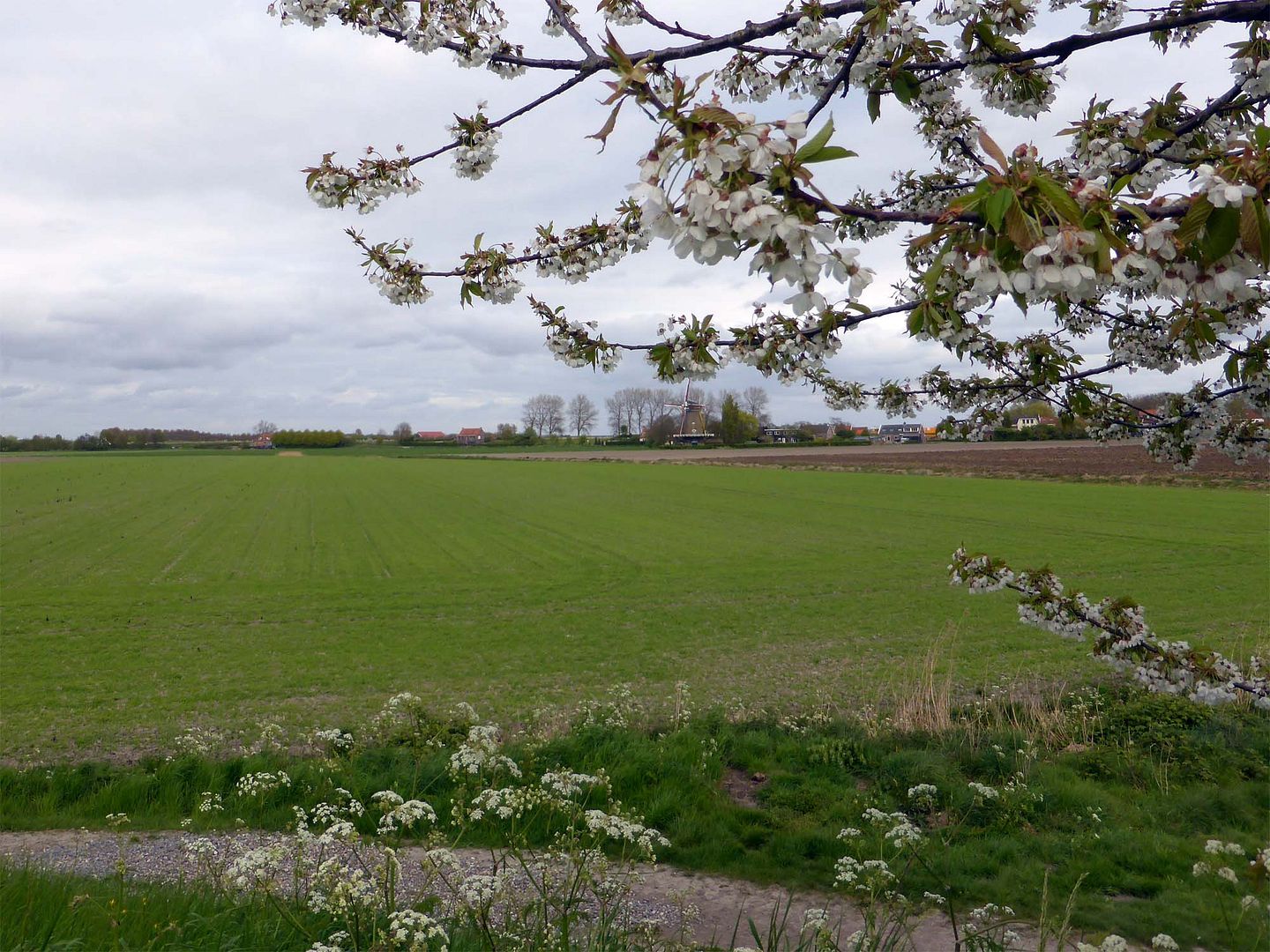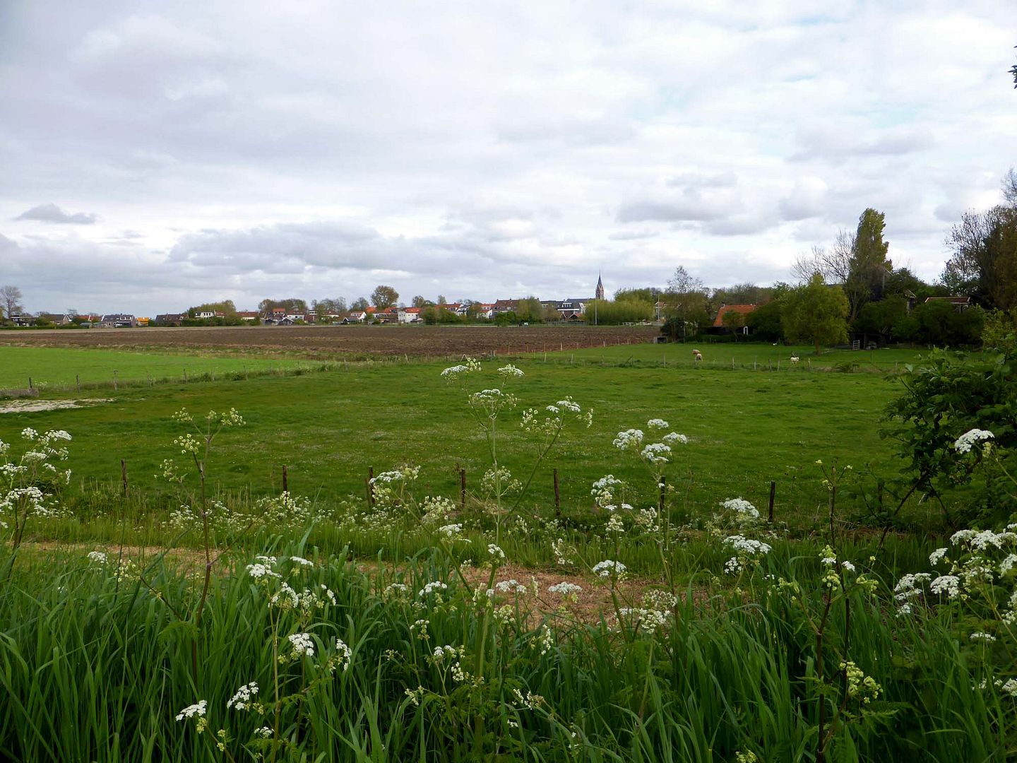 Het is 's avonds nu al flink wat langer licht zodat we ook weer eens een avondrondje buiten het dorp kunnen doen, meestal nog bij ondergaande zon. Vandaag waren we wat wandelen betreft behoorlijk lui. Joop niet hoor die gaat als een speer.