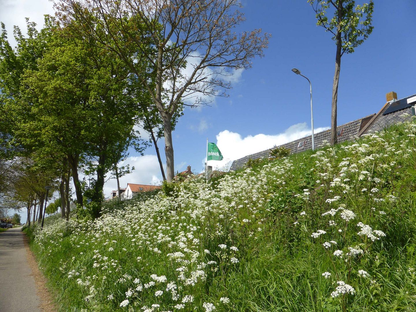 Wij hingen ook de vlag eens uit op Zonnemaire, vorig jaar kwam dat er nog niet van en Joop heeft ook gisteravond pas de standaard opgehangen, maar met vlag en wimpel dus.