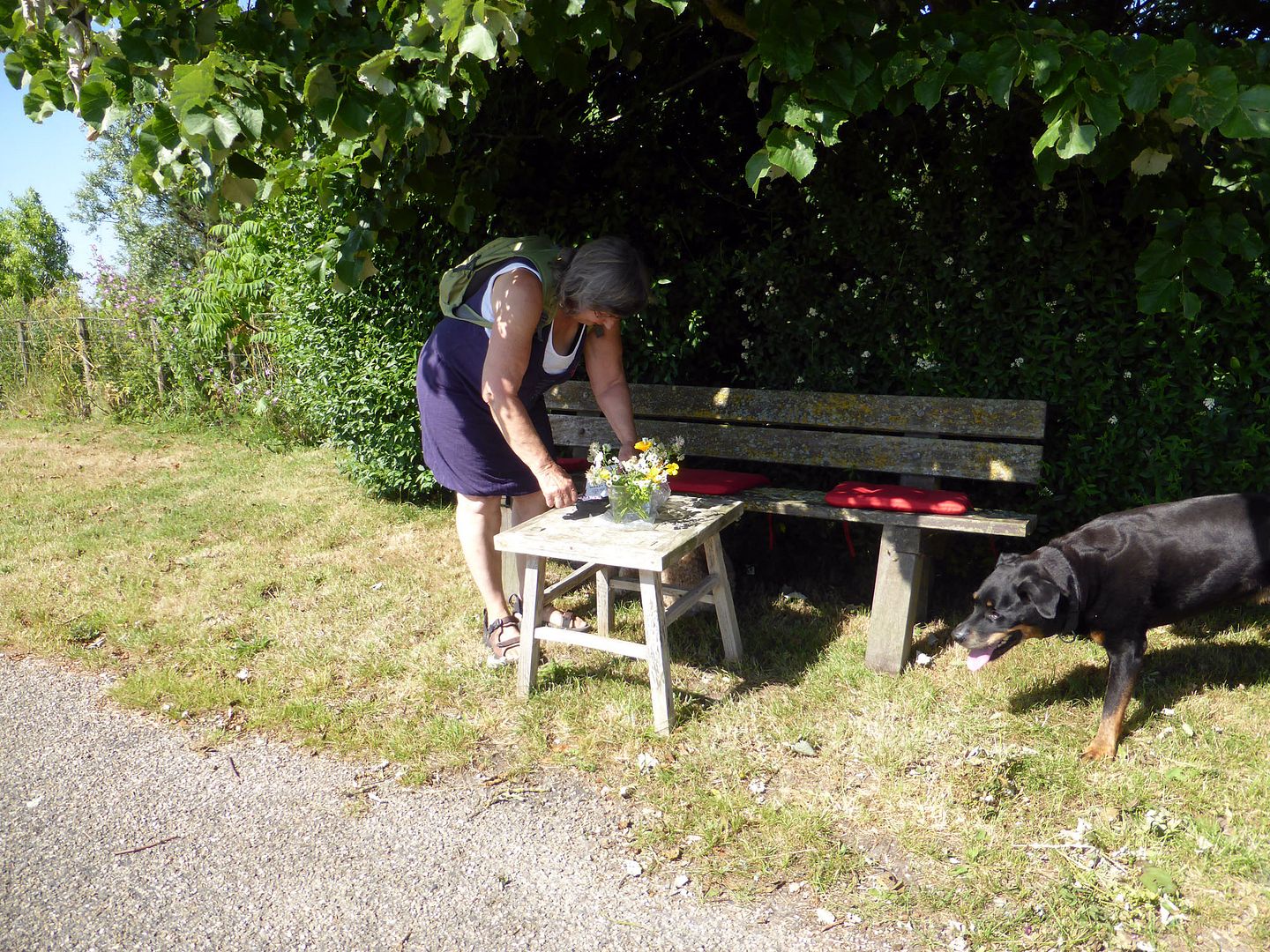 De laatste stokroos is geplant en voor de rest deed ik niets, lag lui in de zon en wandelde een rondje rond het dorp, want Didi had ook geen zin.