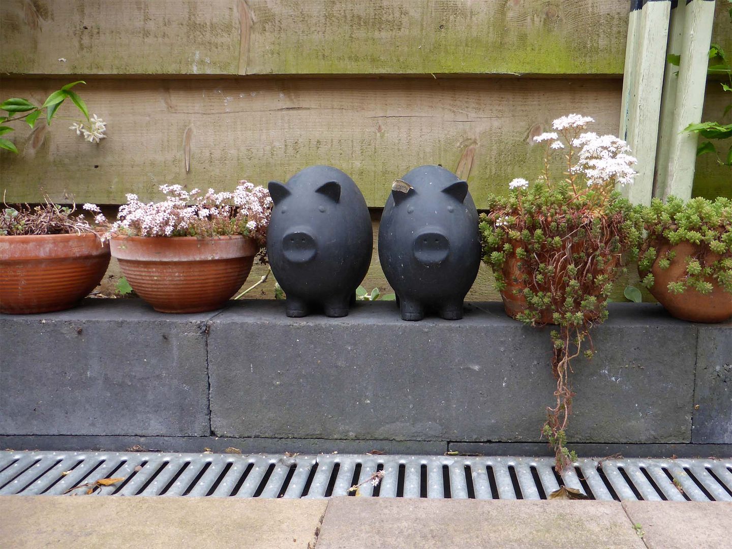 Ik maakte eens wat foto's van de 'tuin' vandaag, want hoe klein, vierkant, betegelt en uitzichtloos ook, ik geniet er wèl van, erg overzichtelijk ook.