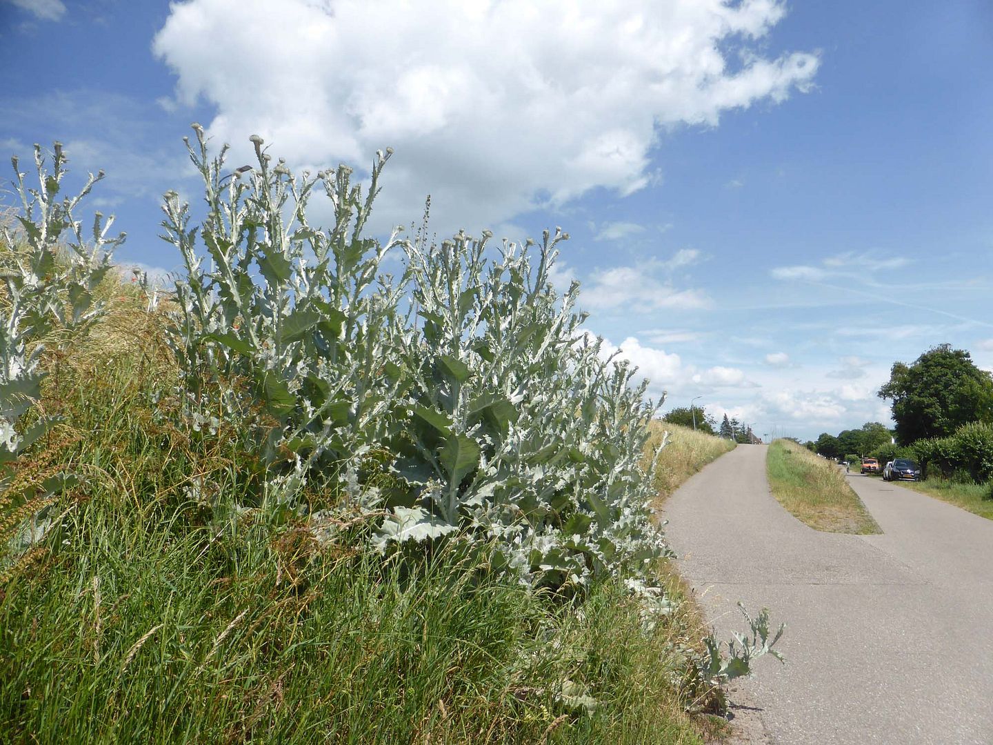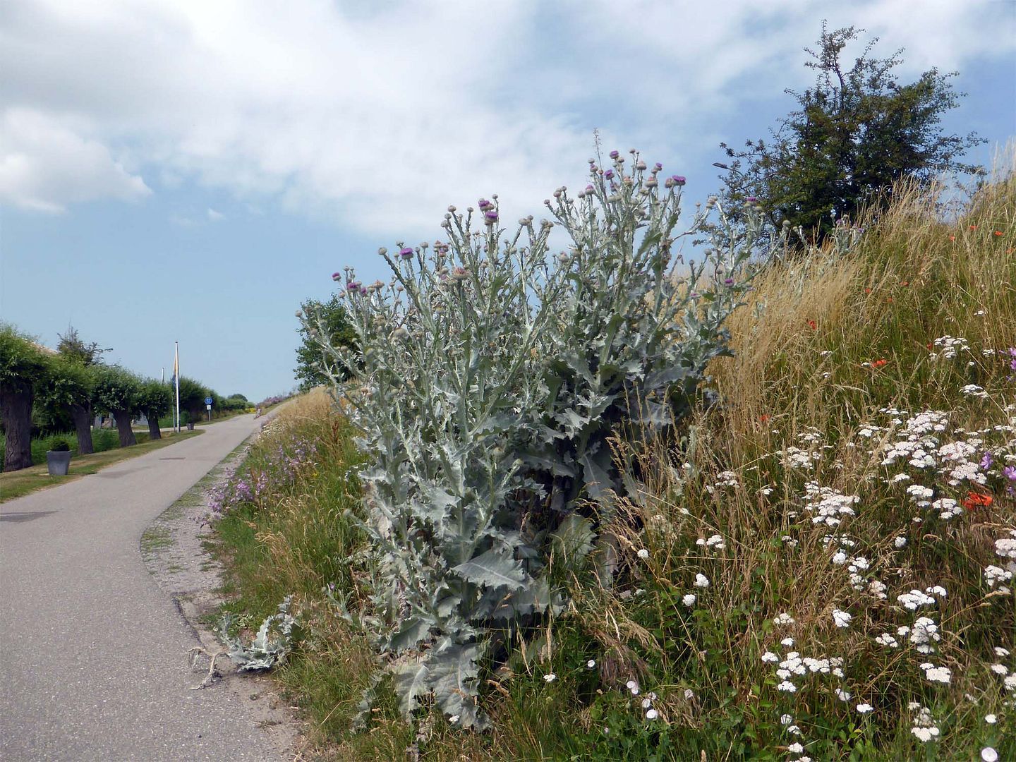 Een stukje verder aan de dijk staat een enorme bos distels van een meter of twee hoog, verder zie ik ze nergens, iemand een idee hoe ze heten?