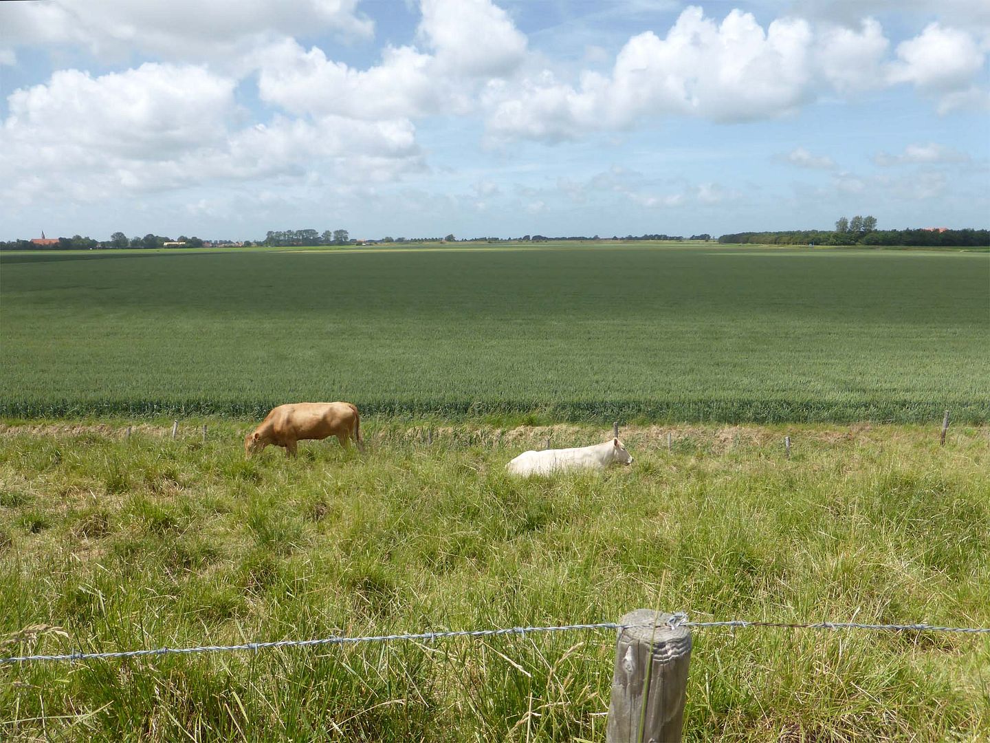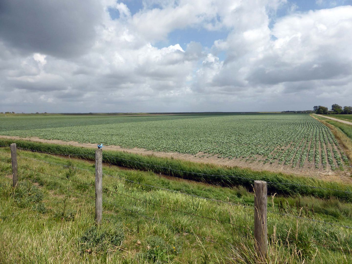 Nog behoorlijk veel wind vanmorgen, maar wel een 'droog' rondje kunnen doen. De polder wordt groener en groener in allerlei tinten, of blauw natuurlijk als er vlas staat.