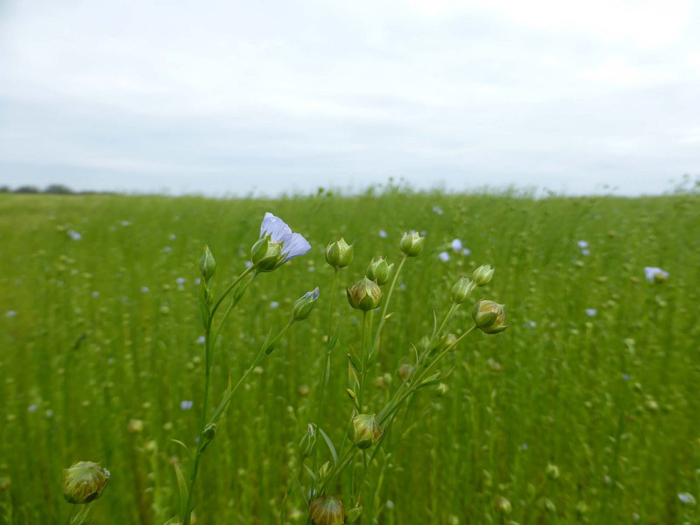 Ik ben vanmorgen eerst eens langs het vlas gelopen om te zien hoe het erbij stond. Het stond nog keurig overeind, maar het was wel zo goed als uitgebloeid en de eerste zaadbolletjes waren zich al aan het vormen.