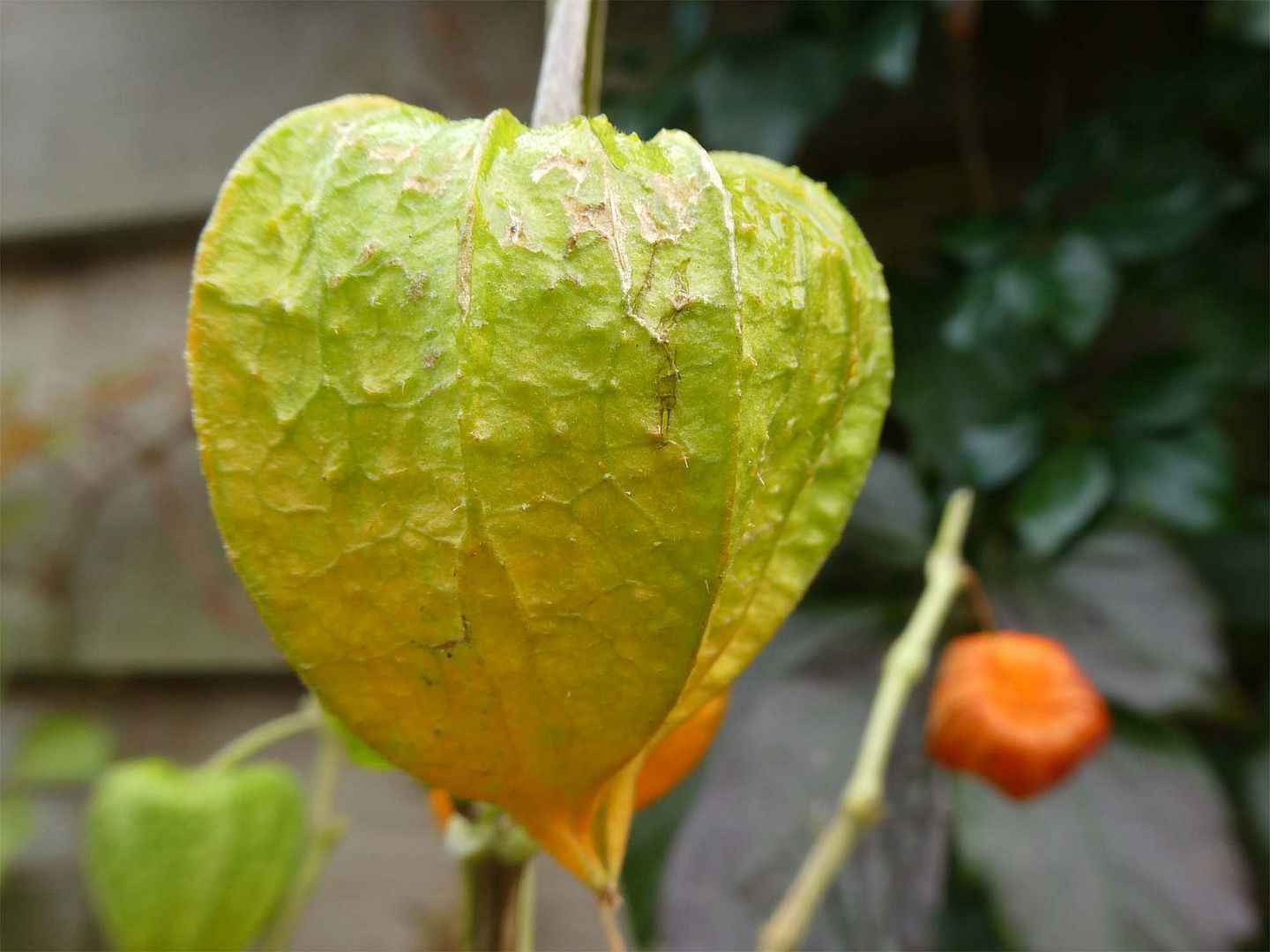Sil en ik wandelden een rondje nadat de regen gestopt was. Ik plukte onderweg nog wat vrolijke lampionplantjes in mijn fijne nieuwe jas.