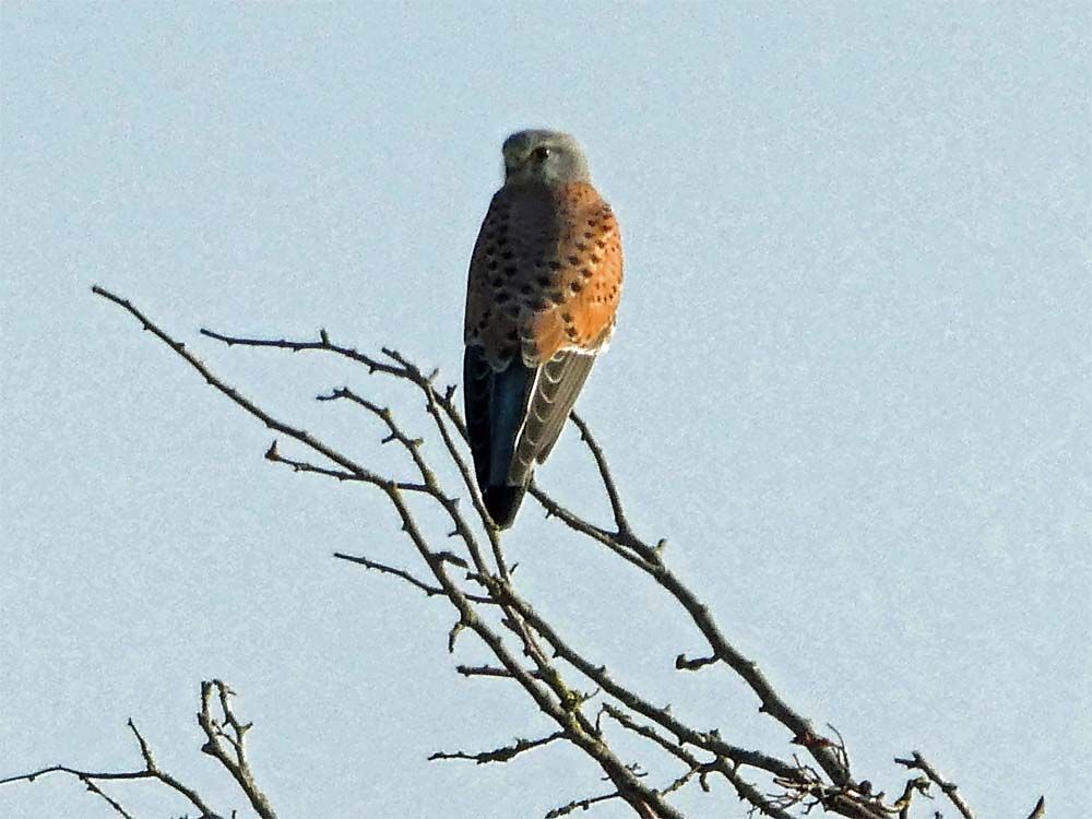Een torenvalk zat lekker in de zon alleen met zijn kop naar de verkeerde kant, dit is de enige foto waarop hij hem omdraait geen denderende foto maar ik vond het toch wel goed genoeg hoor.