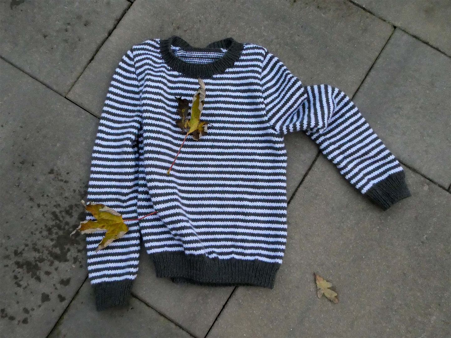 De trui is klaar en inmiddels ook gewassen, die wordt binnenkort geshowd door degene waar hij voor is. Nog vier bollen grijs over, daar kan nog wel een lekkere bijbehorende col uit, die zet ik wel op straks, maar ik ga ook tegelijkertijd mijn nieuwe zwarte bolletjes eens van wat dichterbij bekijken.