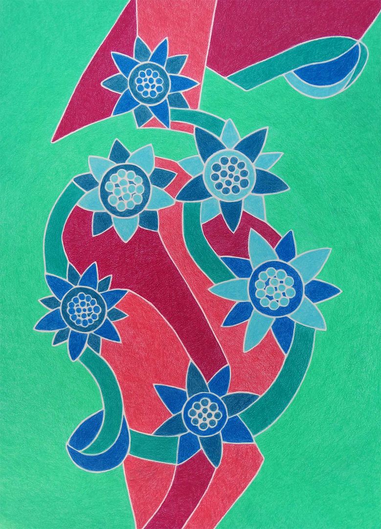 De tekening waar ik eergisteren aan begon is ook weer af, hij is een beetje groen geworden Irene