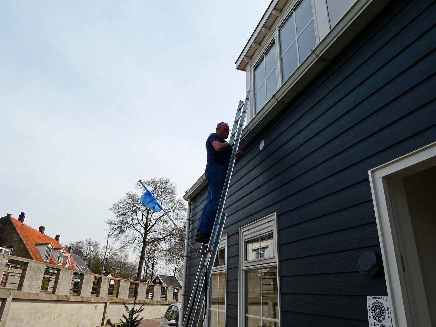 Dan is de ladder die we hebben te kort, nu kunnen we wel ergens anders een langere lenen, maar om de goten schoon te maken is het ook wel handig en ramen zemen, het huis is gewoon nogal hoog en een lange ladder is dan fijn, dus die hebben we nu, de kortere is te koop.