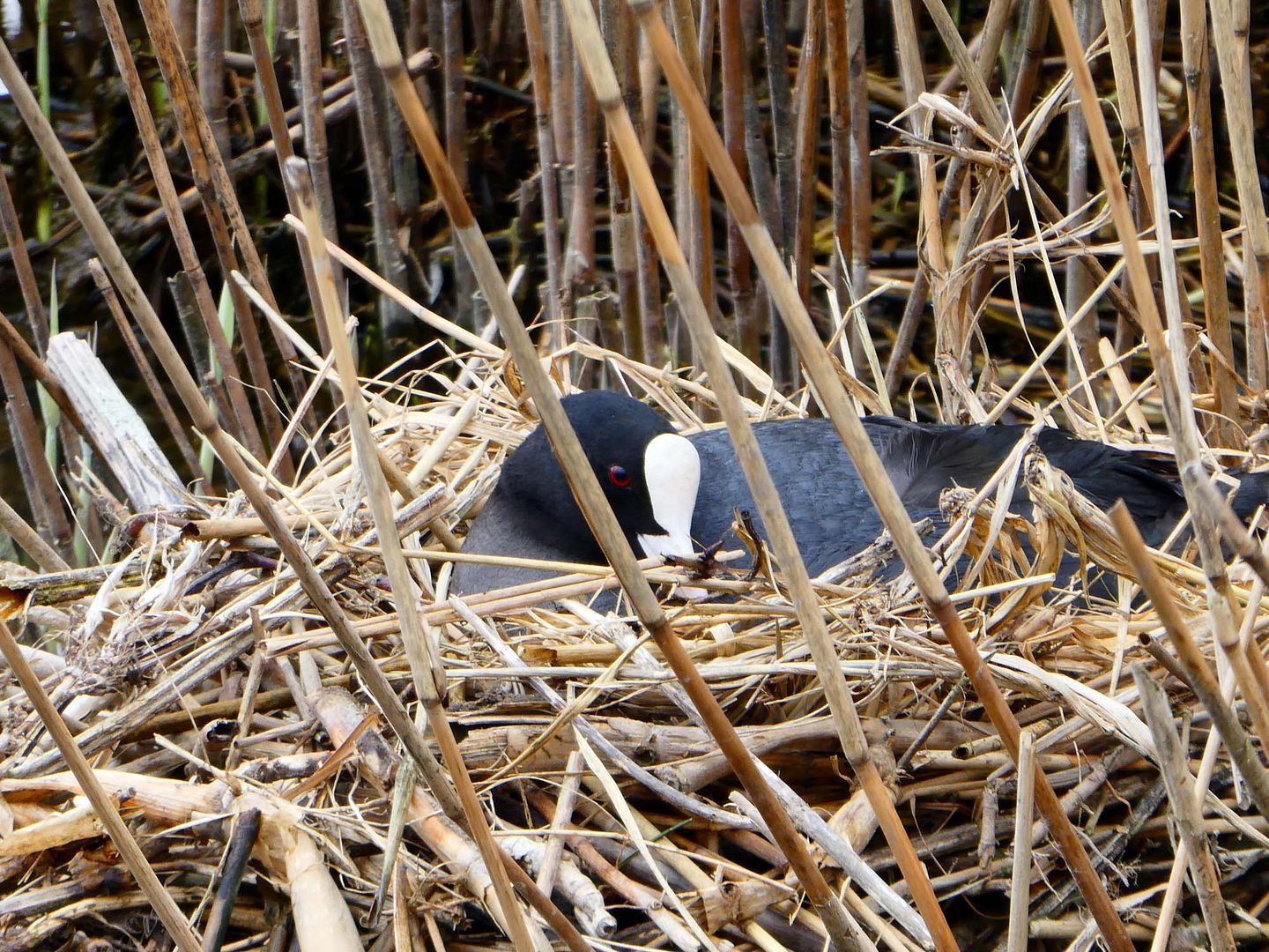Even later zag ik er weer een, deze keer zat er niemand op de zes eitjes, maar ze zullen best in de buurt zijn geweest.
