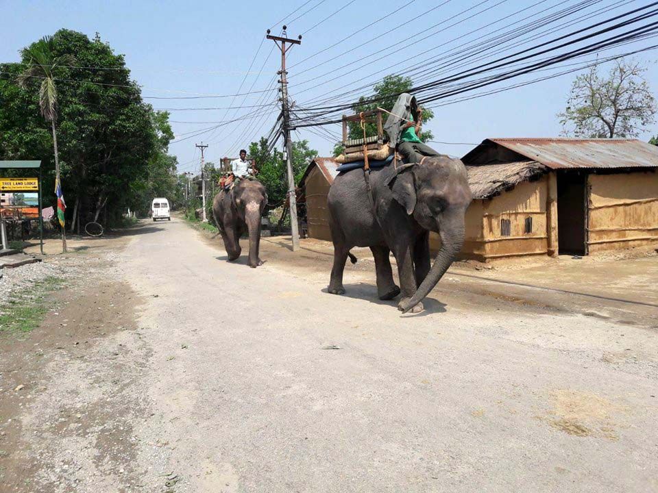 In Nepal was er een behoorlijk noodweer geweest, ik had nog zo tegen Joop gezegd dat hij zijn regenjas mee moest nemen, maar ja eigenwijs natuurlijk. Het water stroomde onder de deur door en er was een stroomstoring waardoor de olifanten nu vrij rondliepen omdat het schrikdraad niet werkte, zoiets. Joop heeft het zelf getest, want wat een olifant kan hebben.... juist.
