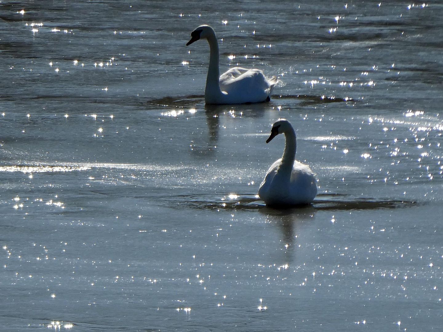 De zwamen landden met een klap op het ijs en hadden toen gelijk een gat om in te zwemmen, niets aan de vleugel.