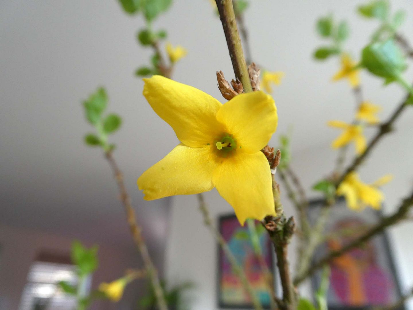Er kan dan misschien nog wel een elfstedentocht aankomen, maar bij mij bloeit toch mooi de Forsythia!