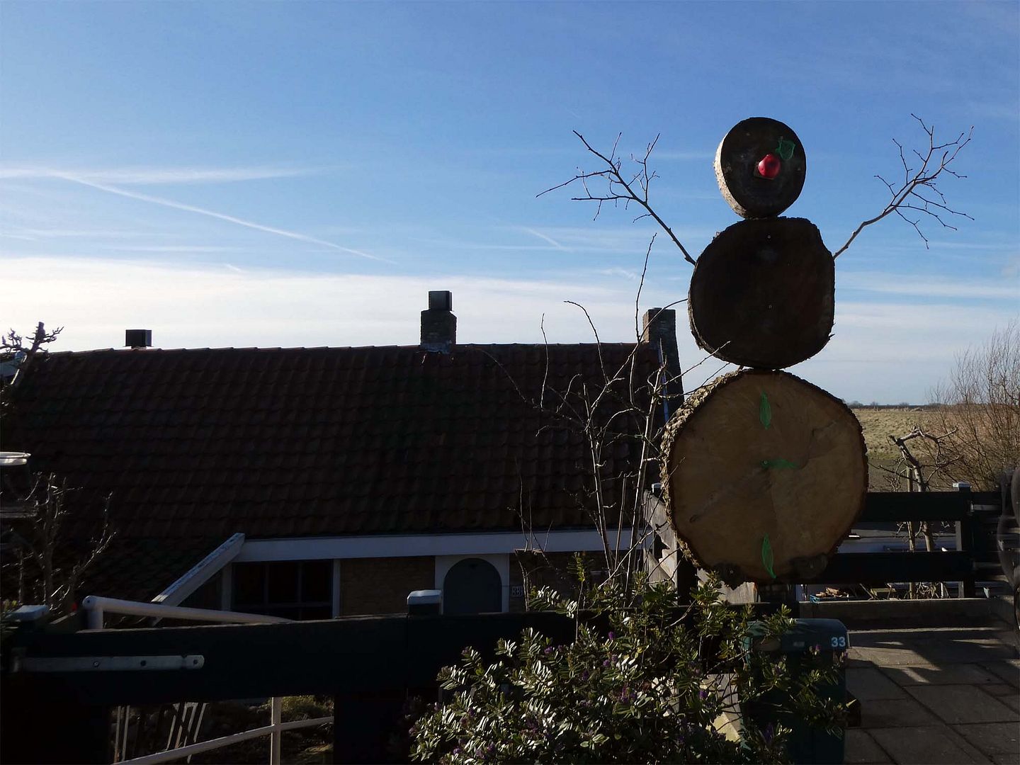Ik wist niet goed waar ik nu weer eens mee moest beginnen en hoe het ongeveer moest worden, zo liep ik een beetje te verzinnen op de dijk... en toen ineens zag ik de paaltjes en daar stond en staat nog steeds vanalles op. Ik maakte een foto en kijk, zo is het gegroeid.