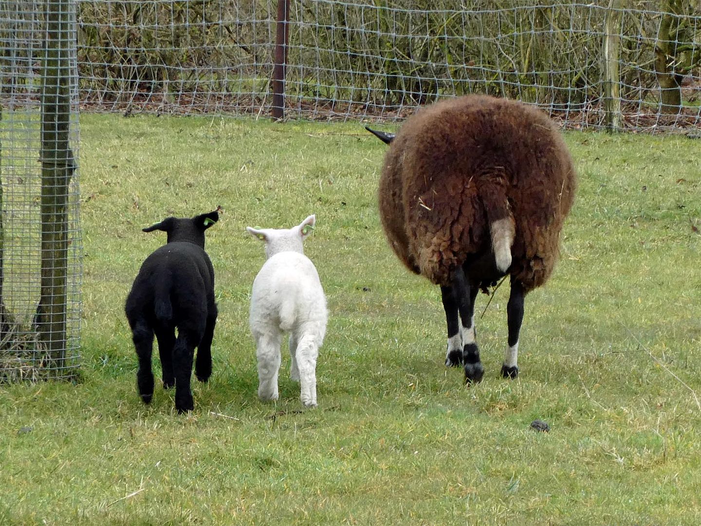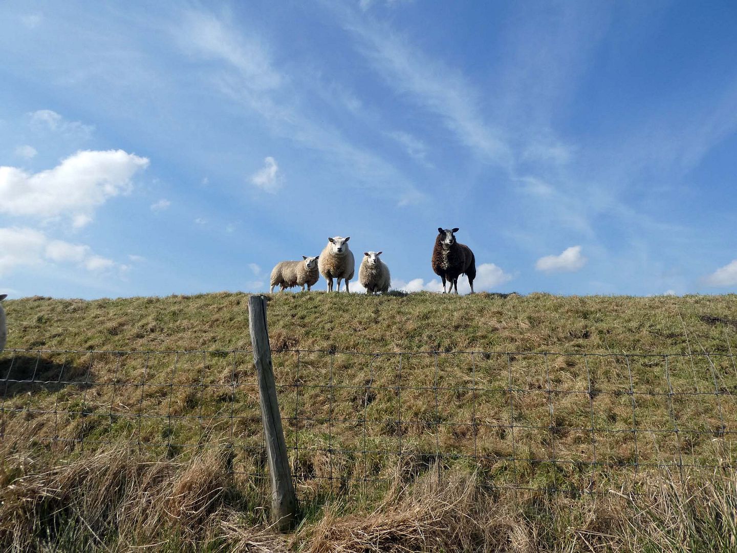 Vanmiddag een rondje schapenweg en bij de Zonnehoeve liepen de lammetjes buiten, ik had er nog niet één gezien dit jaar. Zodoende trok ik mijn fototoestel, maar er was gaas waar het vorig jaar niet was dus ik kon niet dichterbij. De eigenaresse liep er ook rond en ik vroeg of er nog meer waren, ze wees me de weg, maar toen ik daar kwam liepen ook die hard weg. Van een afstandje wilden ze nog wel even naar me kijken.