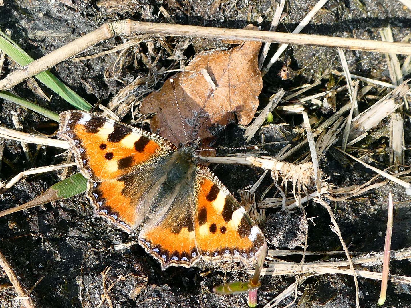 Ik zag al een paar vlinders, niet de eerste van dit jaar, die zag ik al toen er nog sneeuw lag, maar deze kleine vossen dartelden vrolijk langs de dijk en ondertussen verzamelde ik weer een volle zak blik.