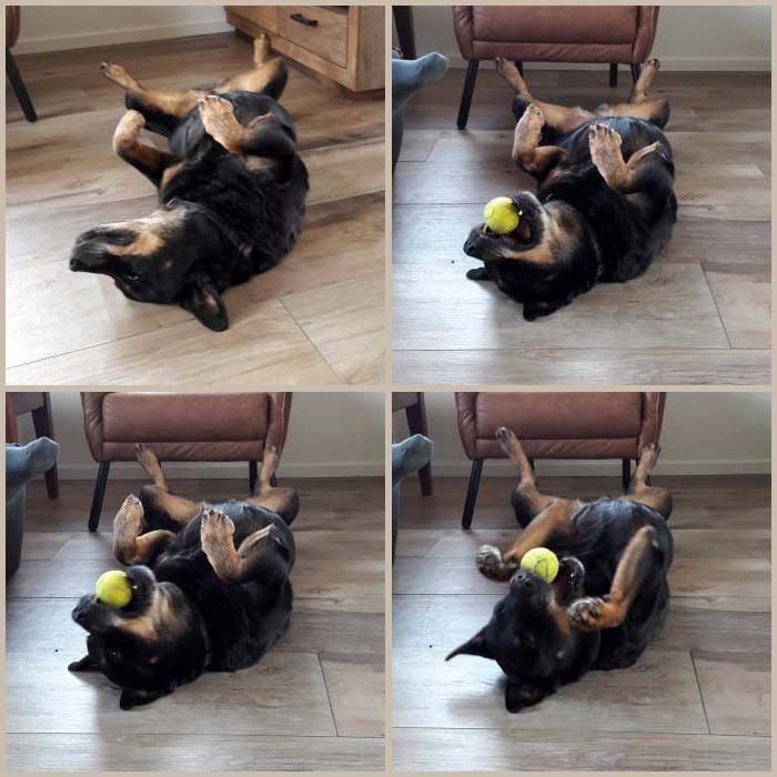 'Dat krijg je er toch niet uit bij die Rottweilers hè', zei ze toen Didi, dominantje als ze is, dat even wou laten blijken aan twee mededorpshonden, er was niets aan de hand, gewoon speels met een beetje gegrom natuurlijk. Die waar ze dat aan liet blijken is zelfs twee keer zo groot als haar en daar speelt ze altijd mee!