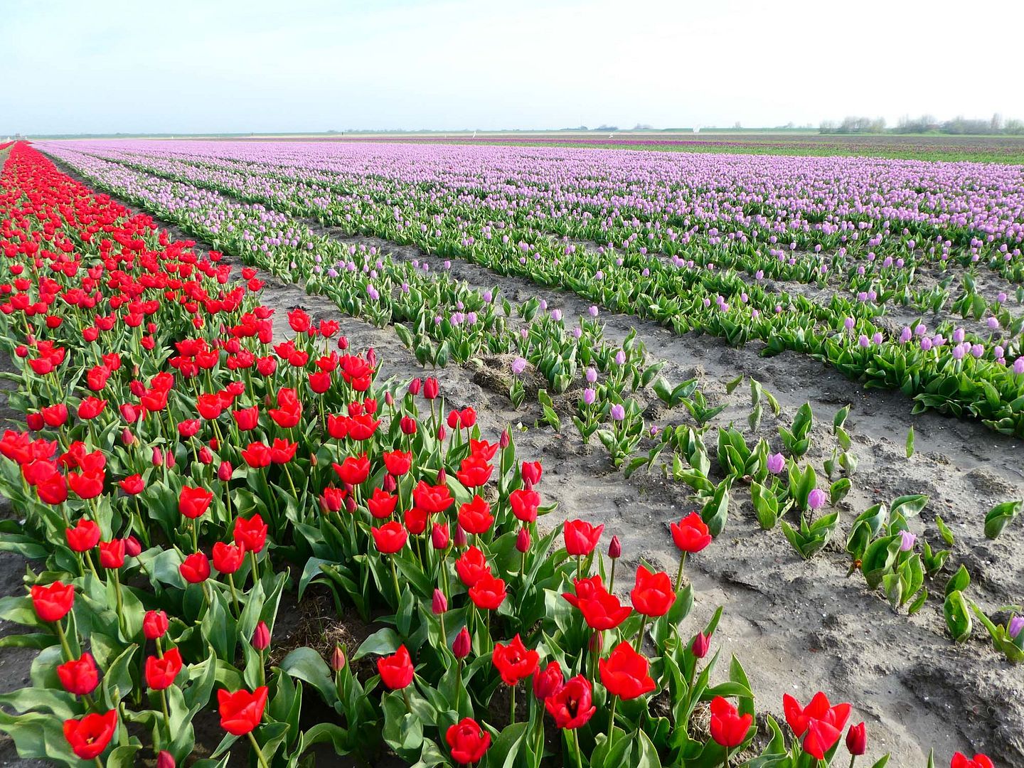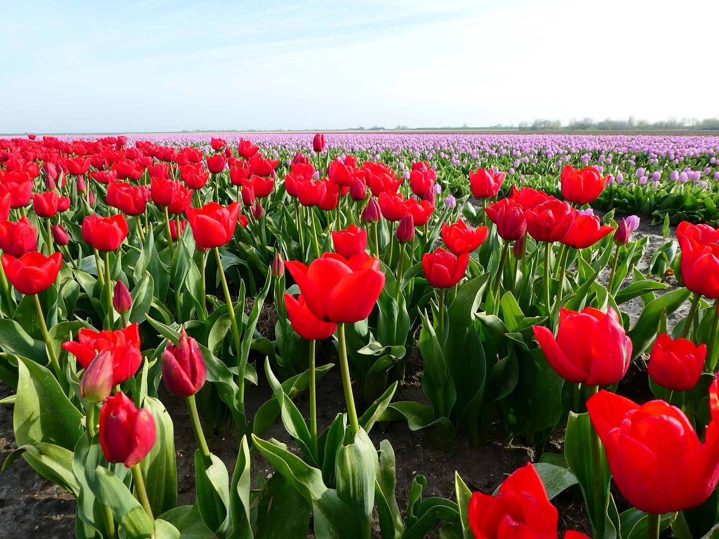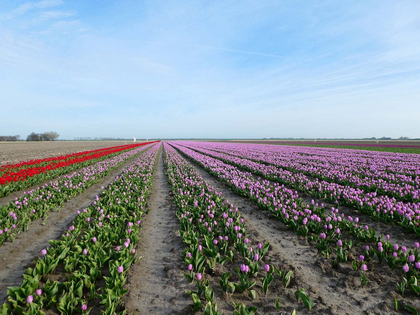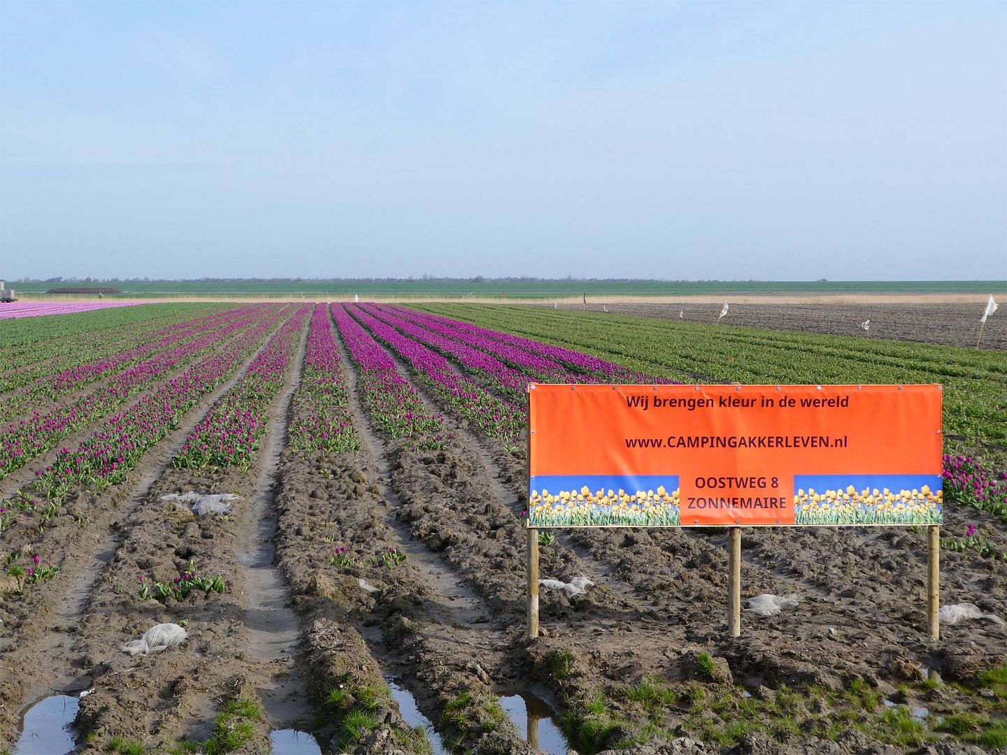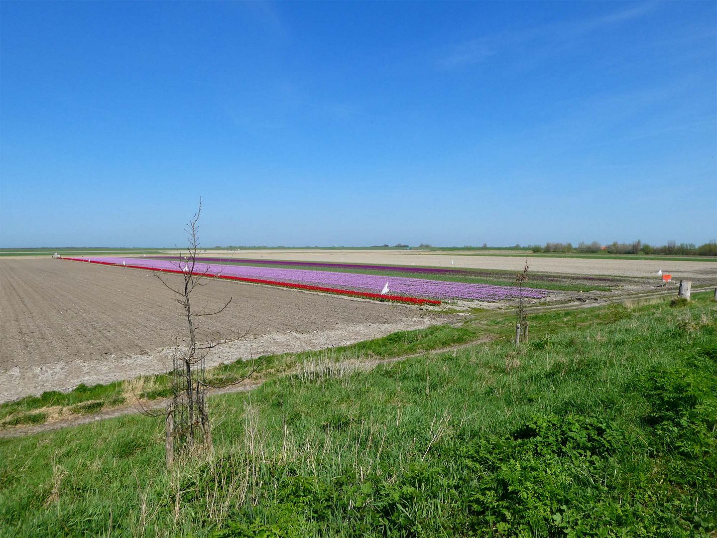 Ik zag ze al een paar dagen vanuit de verte, dus ik ben er vanmorgen eerst maar eens naar toe gelopen. De bollenvelden van Zonnemaire.