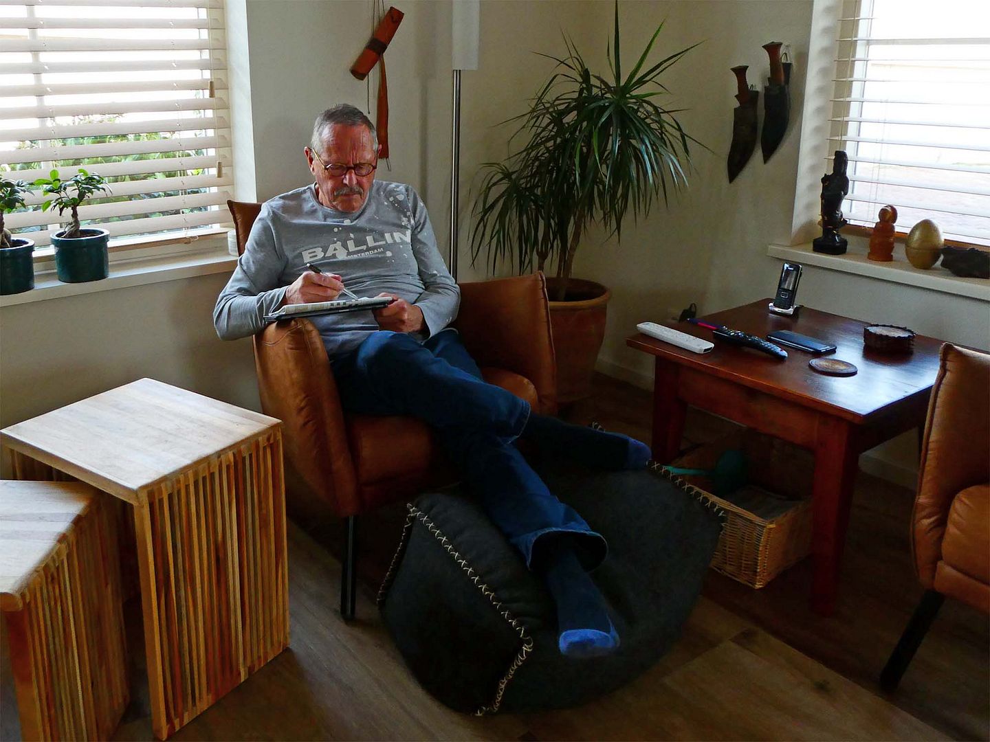 We moesten vroeg op want ze zouden vroeg komen om het zeil op te meten en te kijken of het zo geplakt kon worden, dat kon, maar eerst het sauswerk, rustig aan dan breekt het lijntje niet.