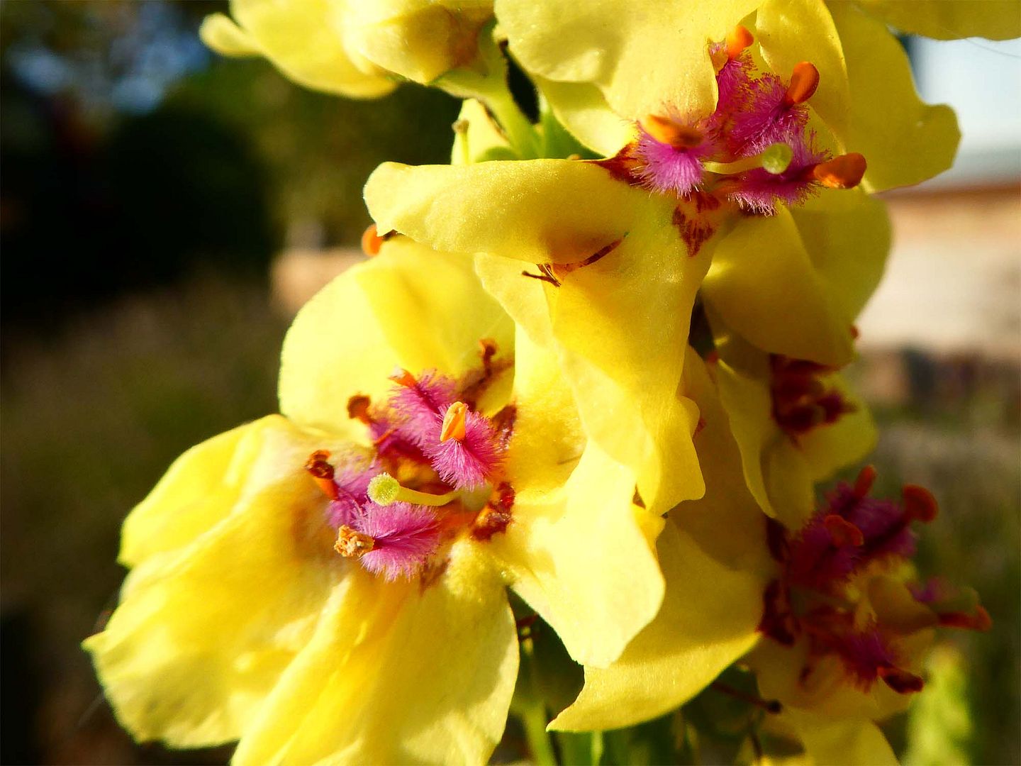 De bloemen van de zwarte toorts van gisteren, ik vind ze prachtig met dat paars en rood erin.