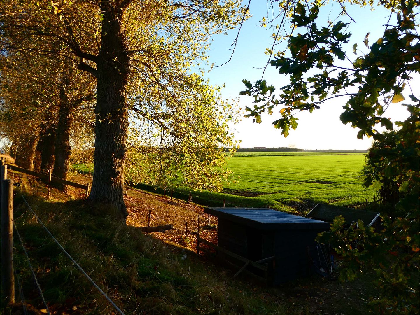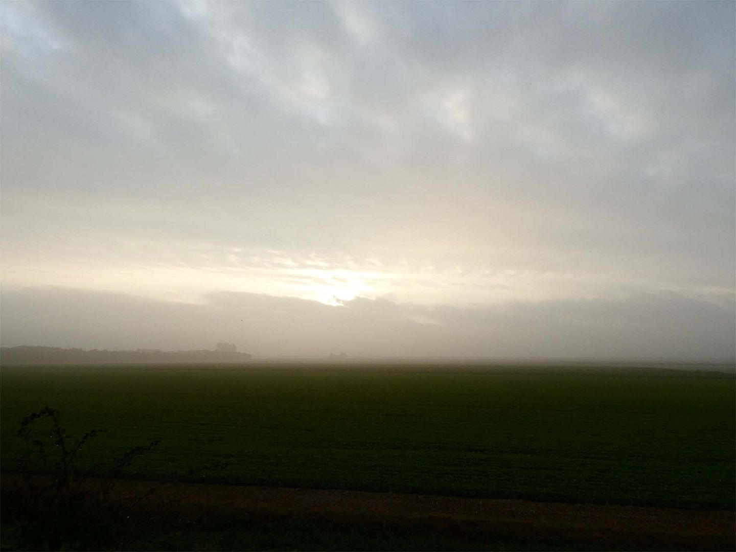En zo zag het er vanmorgen weer uit! Mensen denken vaak dat die polder, zeker als je vaak hetzelfde rondje loopt, altijd maar hetzelfde is, maar niets is minder waar. Altijd anders, iedere dag en je kunt gewoon om je heen kijken want die weg en die kuilen of hobbels die zijn er wel altijd wel, maar die ontwijk je blindelings.