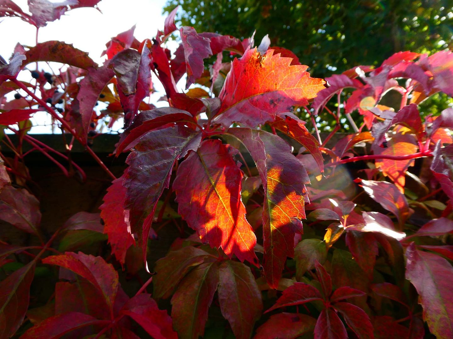 Het wordt nu ook hersft in mien tuun, de wingerd wordt rood en de trompetbloem geel, er zijn nog bloemen, het is een fleurige boel en wat was het heerlijk vandaag!