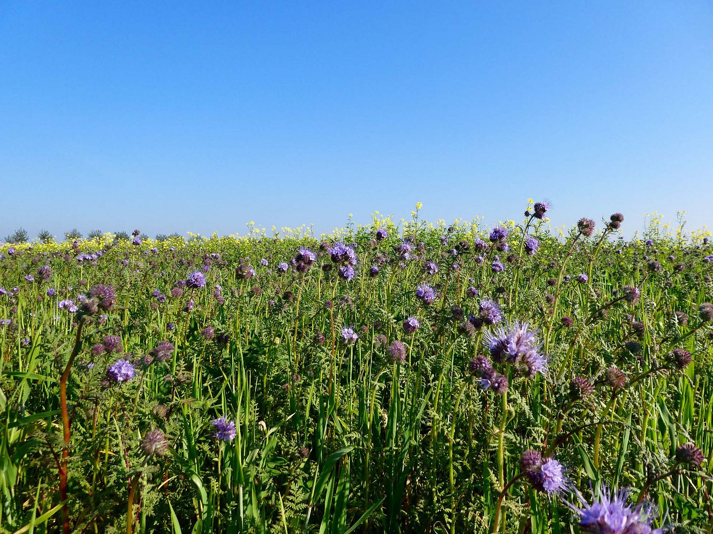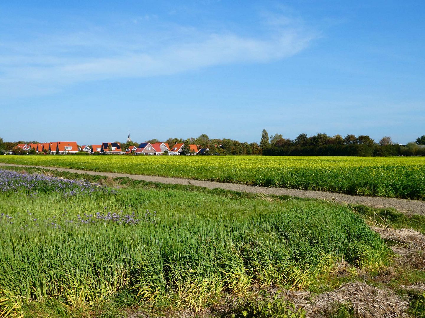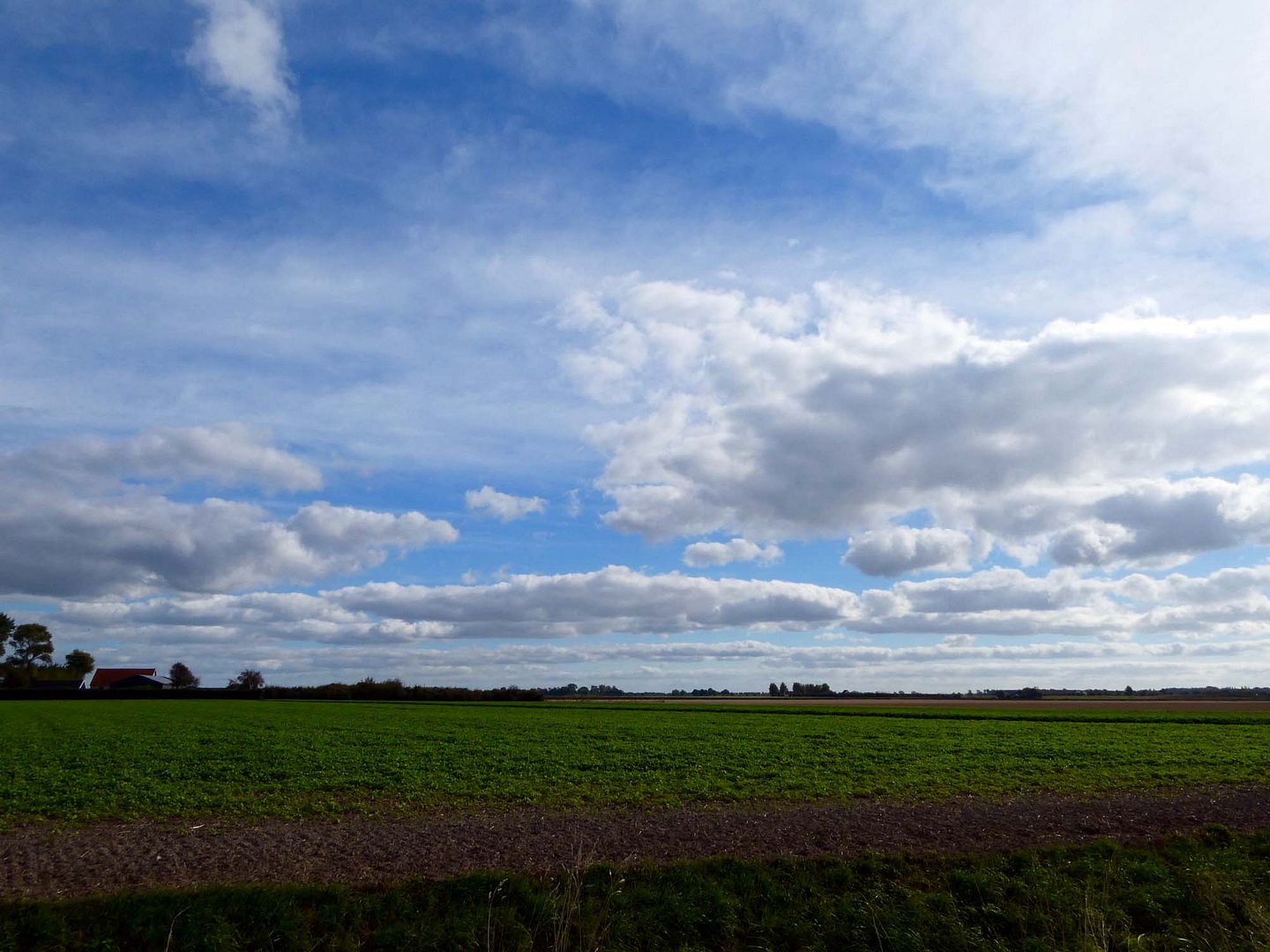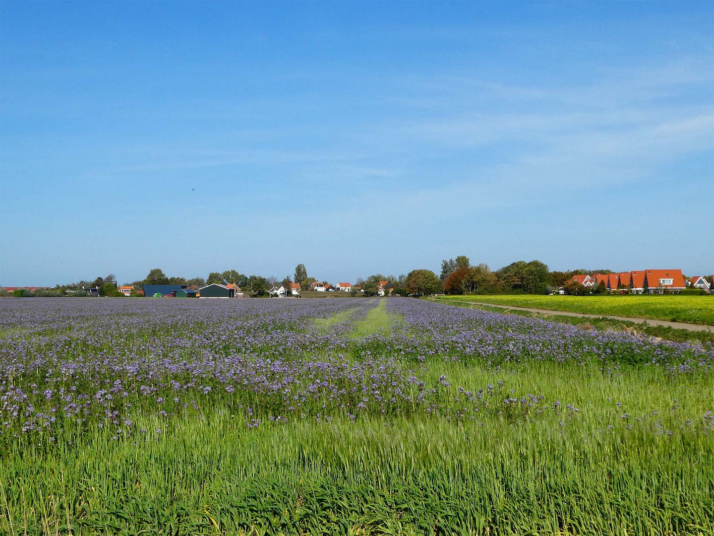 Kijk, dit heet nu groenbemesting. Geel paars of wit, maar vooral niet groen natuurlijk. Het lijk wel zomer in de polder. De boeren rijden af en aan want de aardappelen moeten er nu uit blijkbaar. Het is er ook weer voor natuurlijk, eindelijk eens een keer geen grote blubberpoel, maar droog en nu weer te kleine aardappels? Ik koop ze bij een boer hier in de buurt, maar dat zijn mooie aardappelen, die joekels hoef ik toch niet.