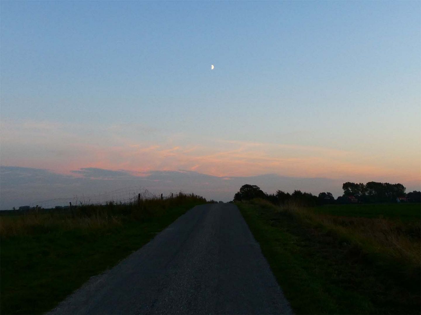 Vanavond een rondje Korte Weg rond zonsondergang met een opkomend maantje, heerlijk!