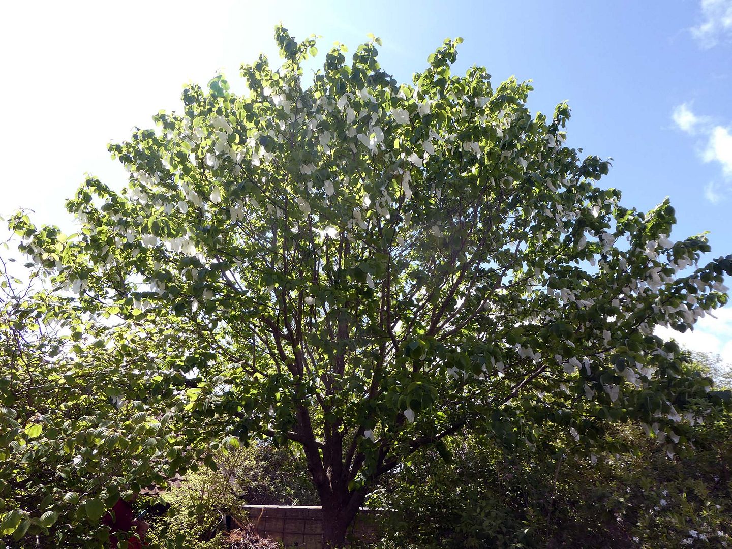 Ik verwachtte een klein boompje maar het is echt een grote boom met heel veel zakdoekjes zo lijkt het, erg leuk om te zien.