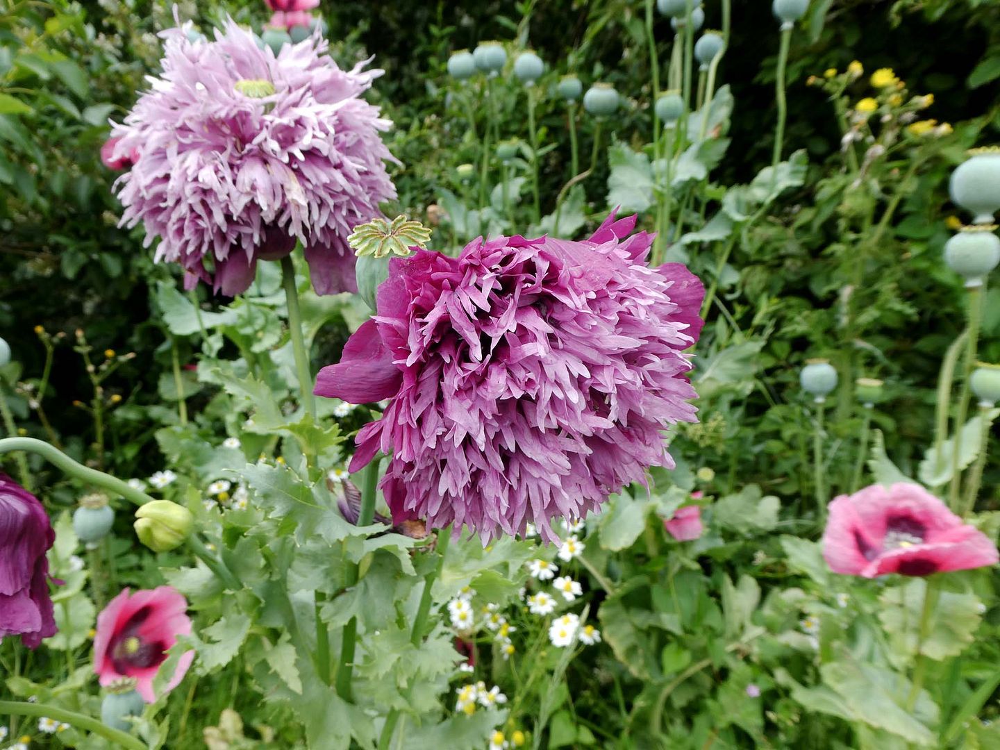 Klaprozen in verschillende kleuren en dubbele, dat wordt zaad verzamelen voor Margo. Ik vind ze ook erg maar ik zou niet weten waar ik ze moet zetten.