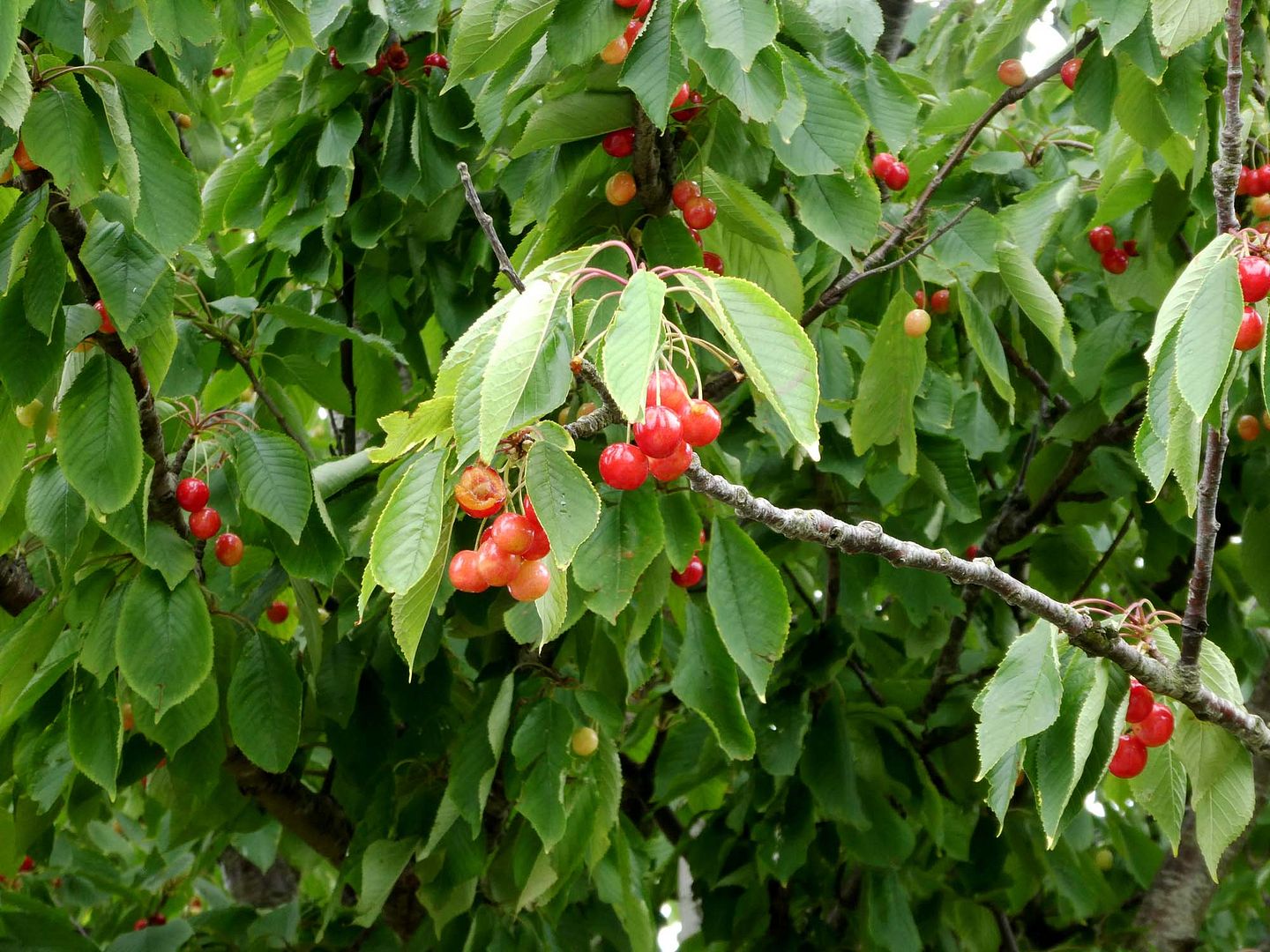 Een stukje verder zijn de spekkersen rijp, heerlijk even snoepen onderweg.