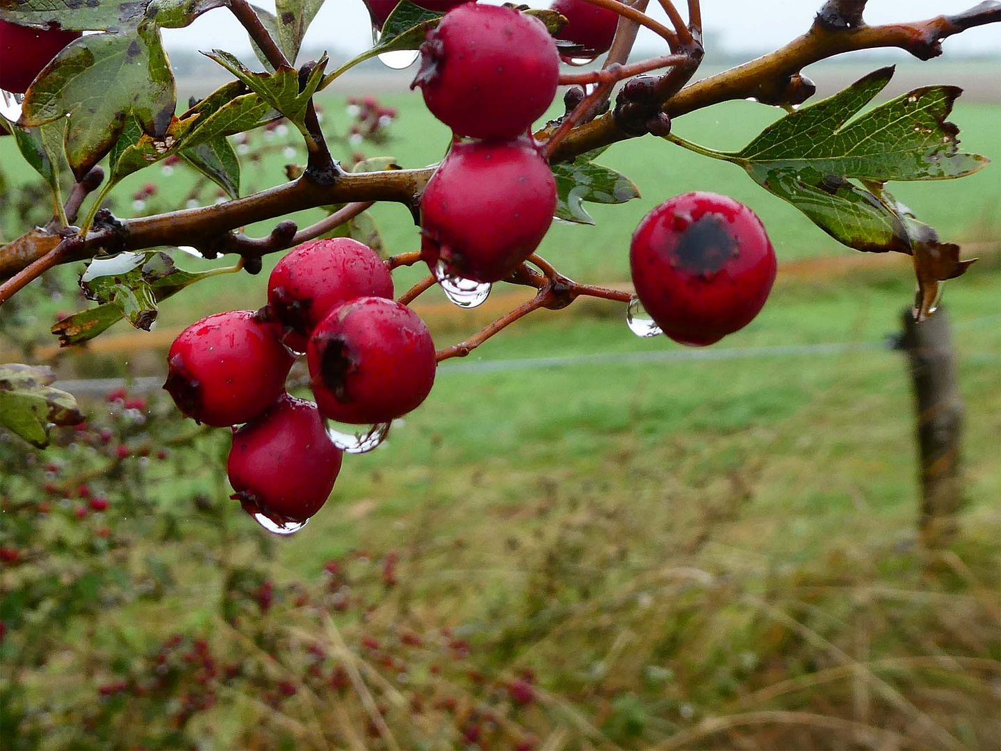 Herlijk gewandeld vanmiddag! Ik had alleen een regenjas aangedaan, het miezerde een beetje maar om daar nu een regenbroek voor aan te doen... en omdat het zo lekker was buiten, windstil, overal stil want geen jakkerende tractoren, liepen we er lekker op los en deden een groot (6km) rondje. Ik vergat mijn capuchon op te zetten, mijn benen en hoofd waren nat, de rest bleef droog. Ik heb een heerlijke regenjas!