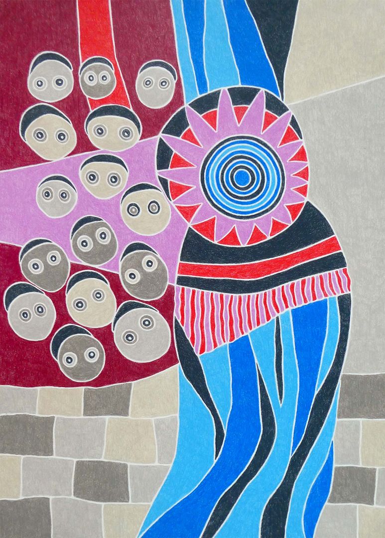 Daarna maakte ik mijn tekening af en maakte een foto ervan, altijd weer een gedoe om dat zonder schaduw en recht voor elkaar te krijgen, maar hij staat er weer op en nee, niet een van mijn favorieten, maar wel gewoon een leuk kleurig ding.
